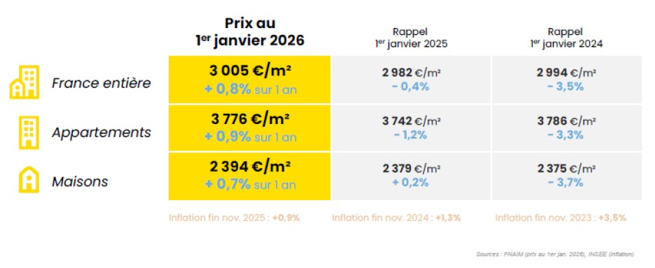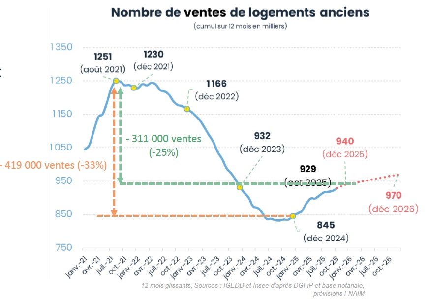 En 2026, la FNAIM anticipe une poursuite de la reprise du marché immobilier, avec une hausse des transactions attendue entre 960 000 et 980 000 ventes, dans un contexte de prix orientés à la hausse, mais de manière contenue (+1 % à +2 %).