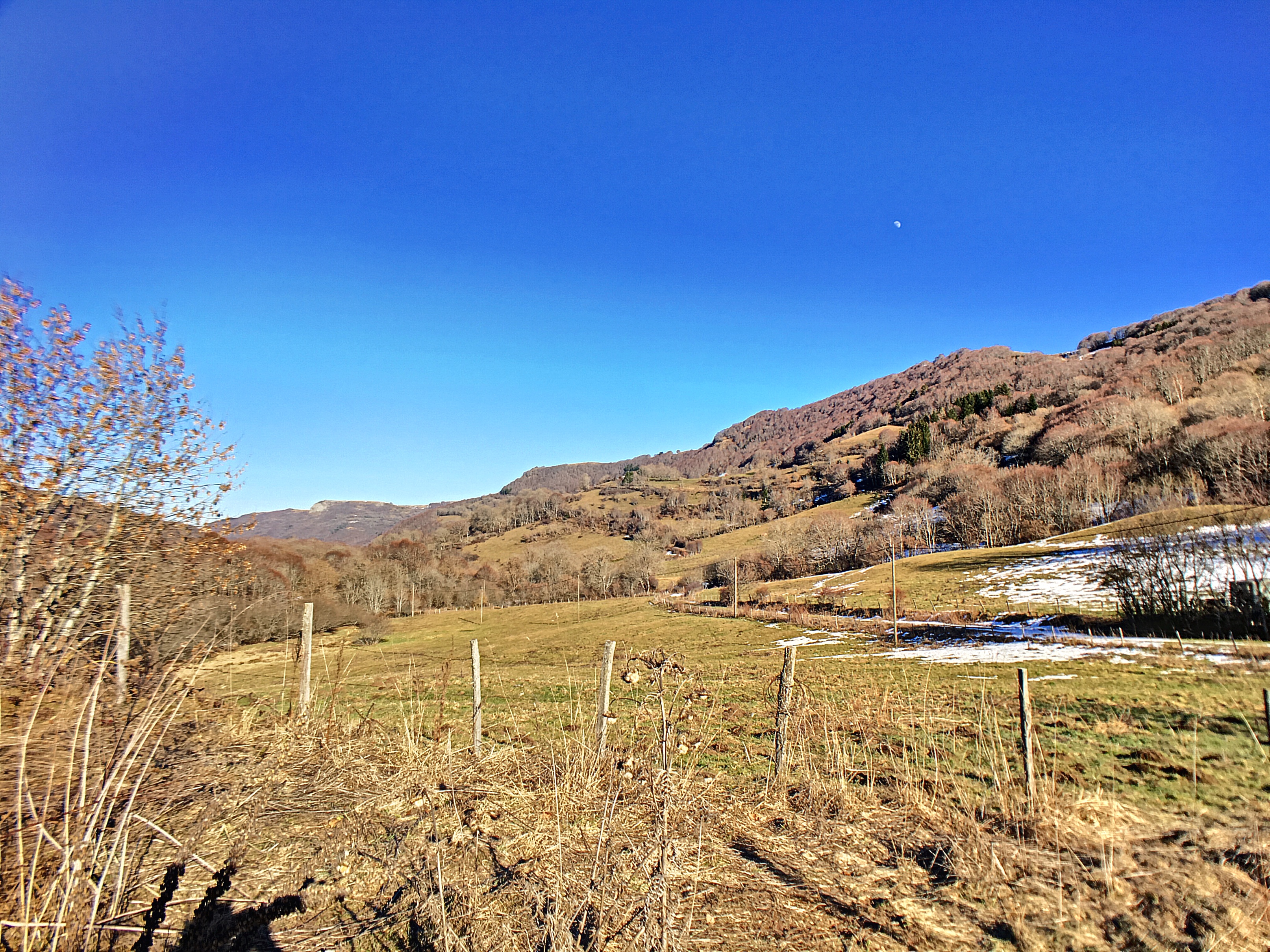 À l'étage, un fenil de même superficie est aménagé sous la charpente traditionnelle et la toiture en partie recouverte d'ardoises.