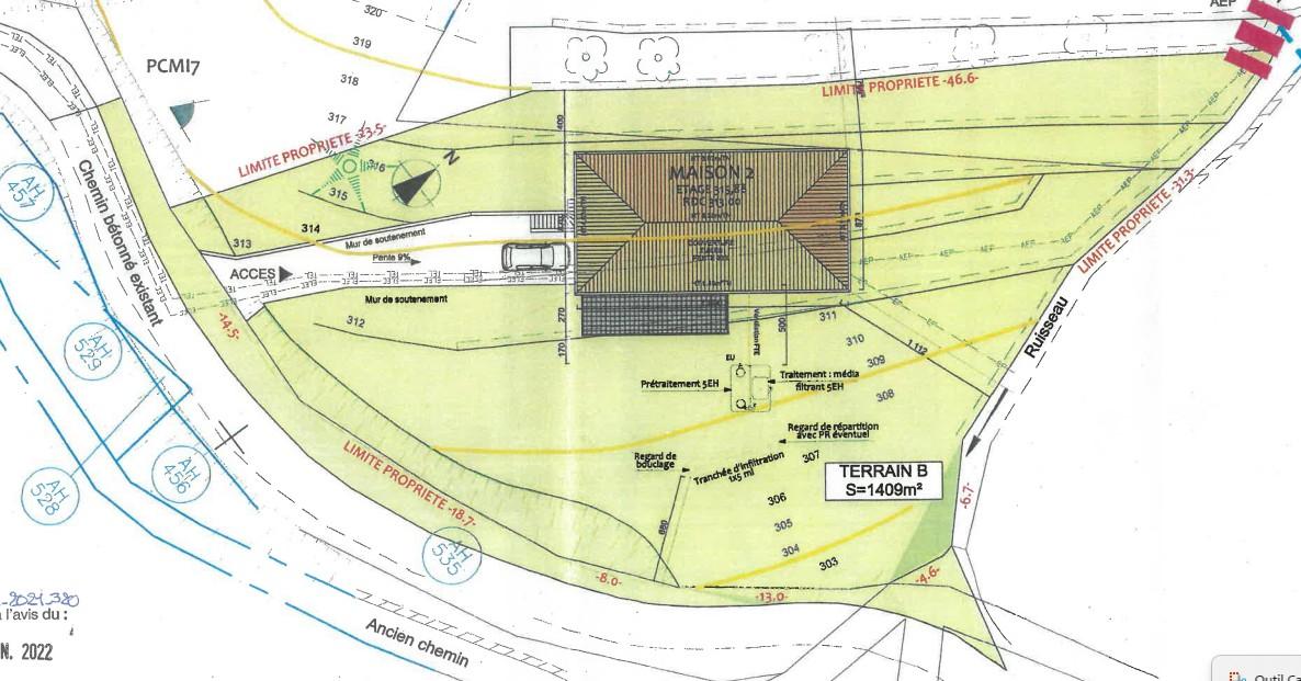 Le terrain dispose d'un permis de construire déjà accordé pour une maison conforme à la norme RT 2012, vous permettant de concrétiser votre projet rapidement tout en évitant les contraintes actuelles liées à la RE2020.
