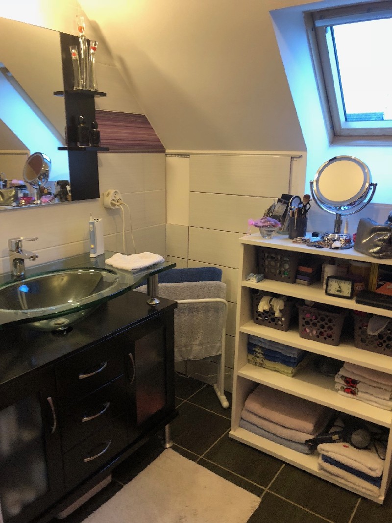 . à l'étage : une pièce palière, trois chambres, un bureau, une salle de bains et un sanitaire.