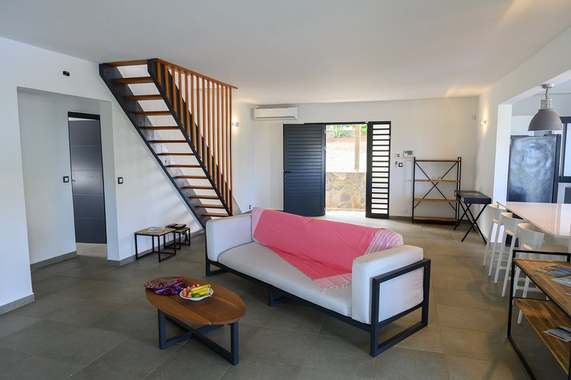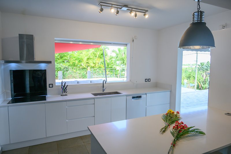 Située dans un secteur privilégié et recherché de Baie-Mahault, cette villa entièrement rénovée de 150 m2 et décorée avec goût, vous séduira par son architecture, ses aménagements, ses prestations, sa très belle vue dégagée sur la chaine de montagnes. Environnement calme et apaisant sur un terrain d'environ 1 800 m2 entièrement clôturé et fermé par un portail motorisé.