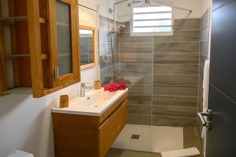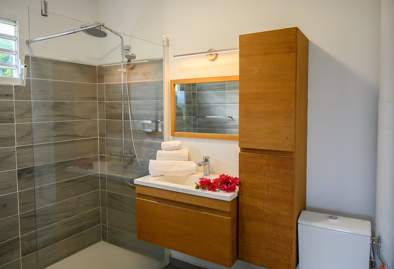Cette villa se compose de deux chambres climatisées avec placards, deux salles d'eau avec wc.