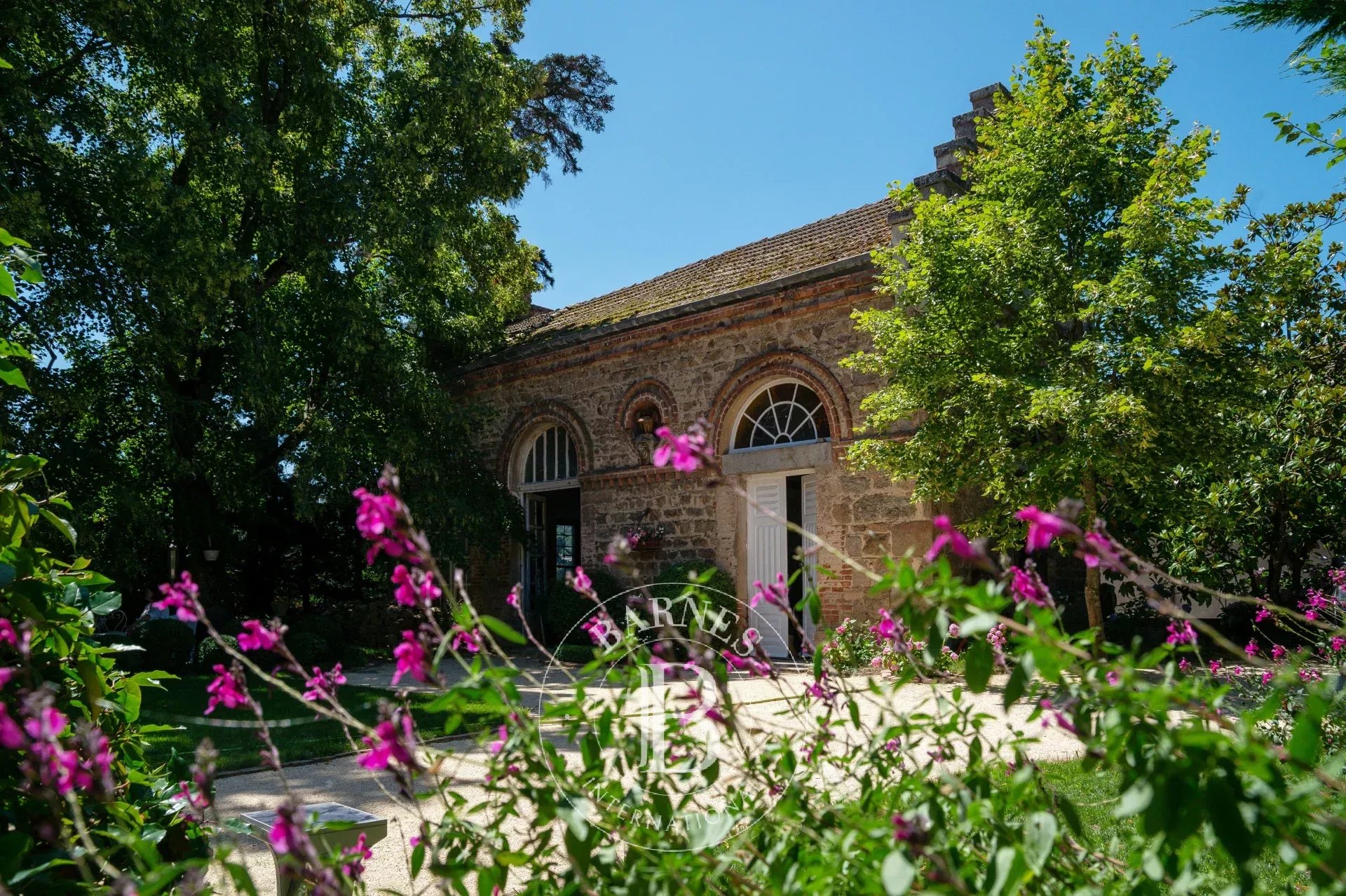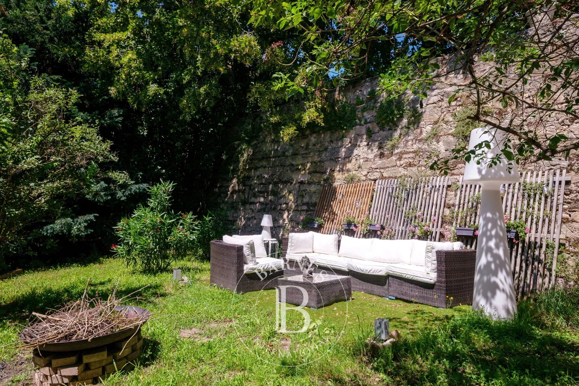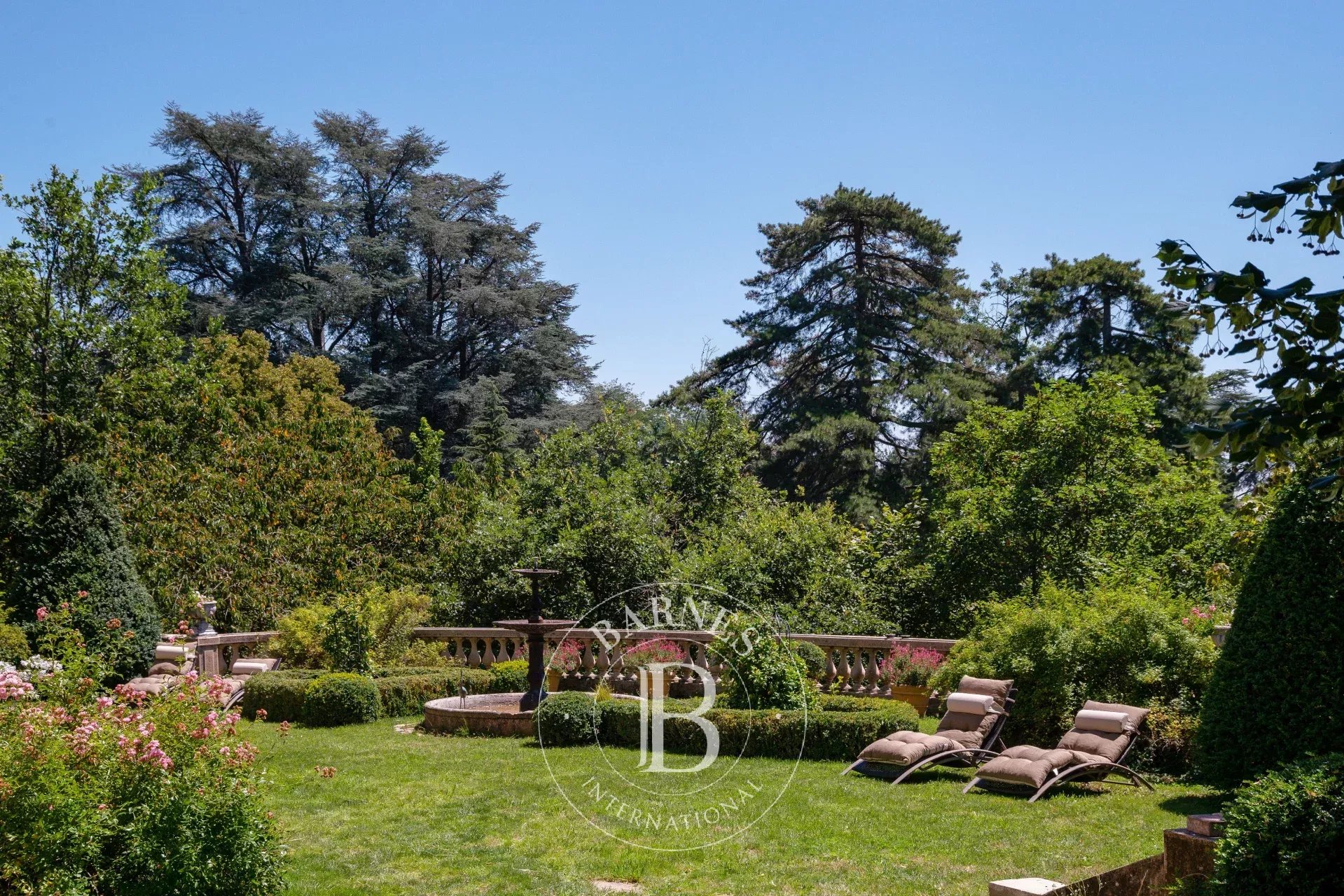 Les pièces de réception, baignées de lumière, se prolongent sur une terrasse plein Sud et un jardin aux essences matures.