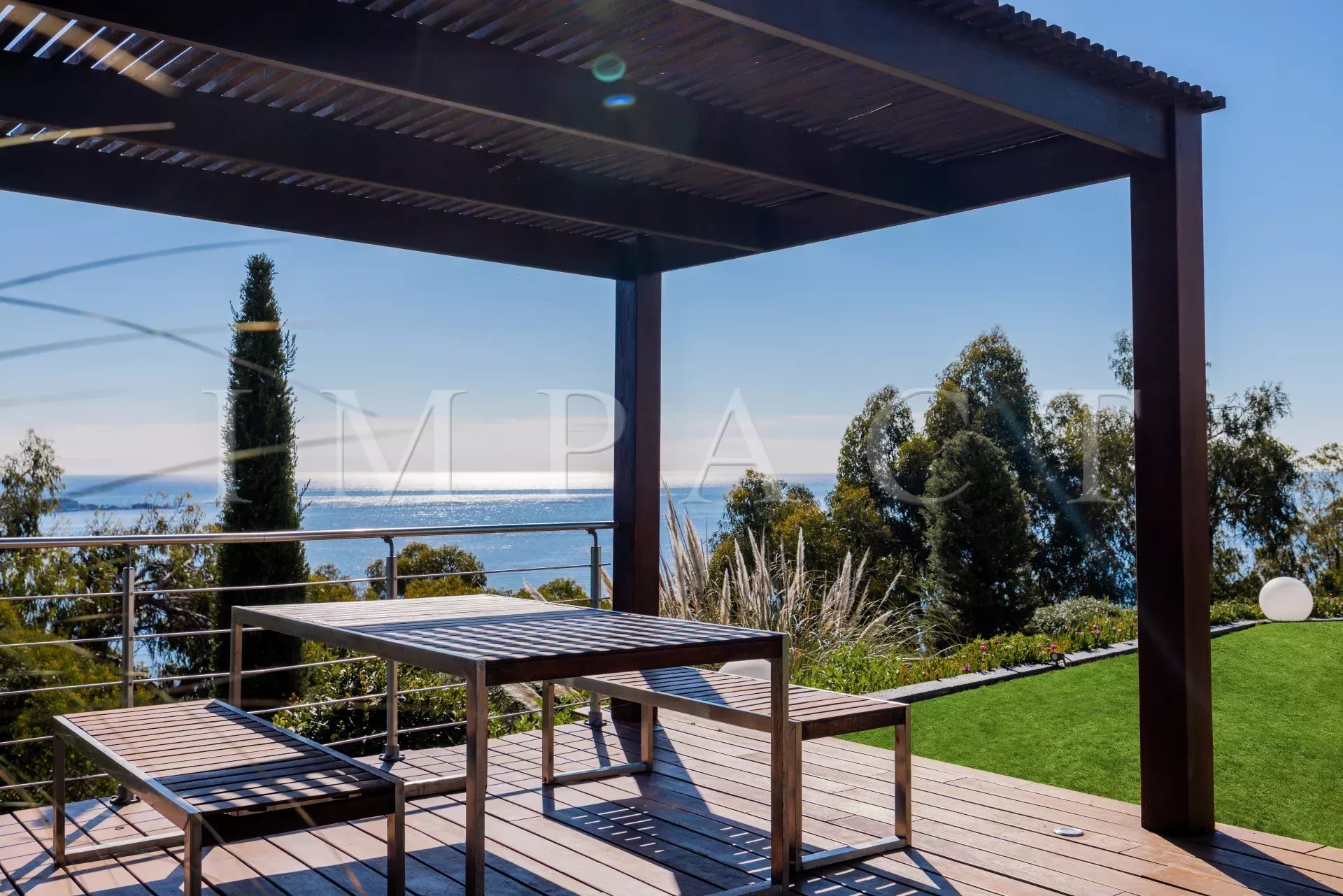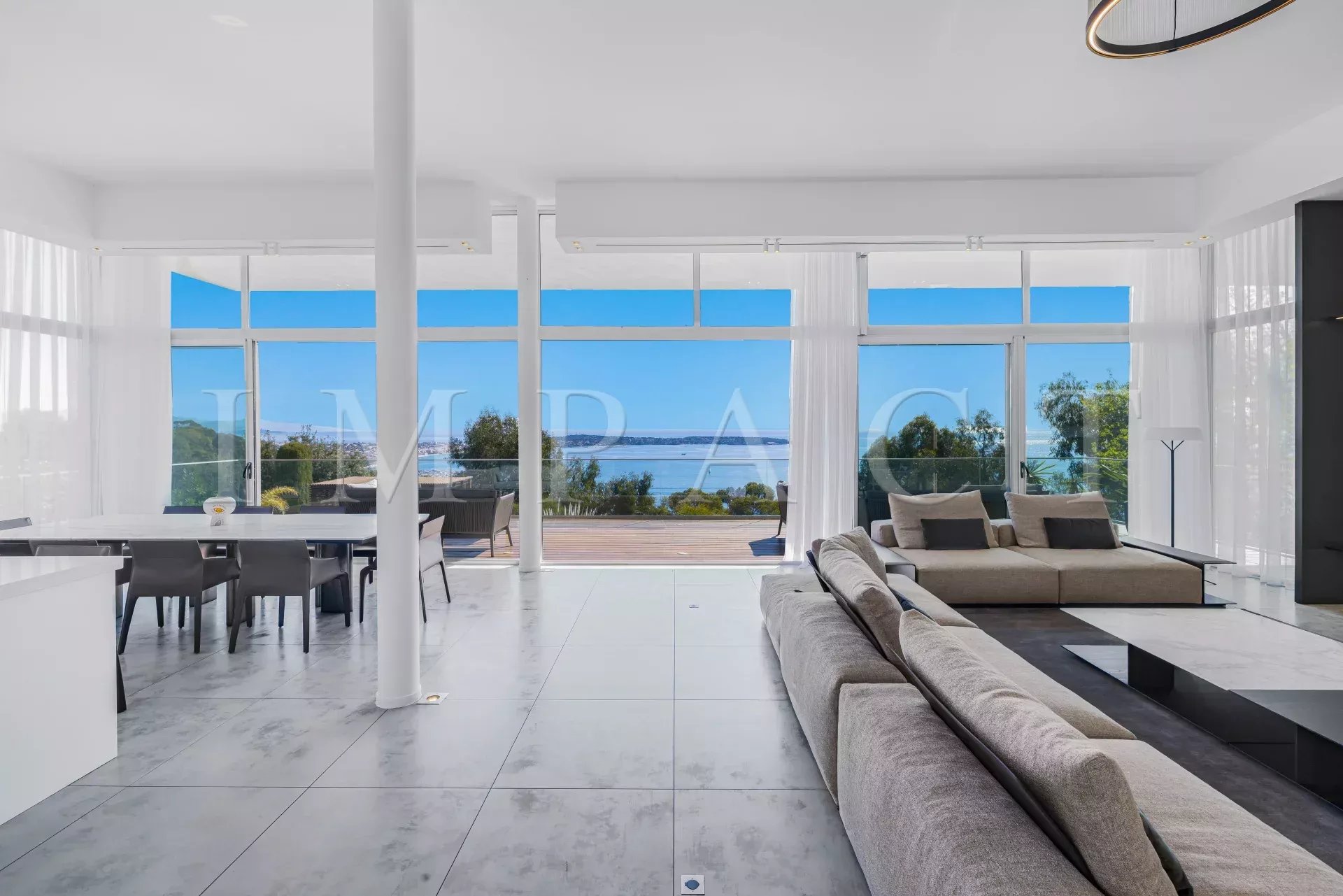 Vaste et exceptionnelle réception d'environ 100 m² bénéficiant d'une vue mer exceptionnelle, avec cuisine ouverte entièrement équipée.