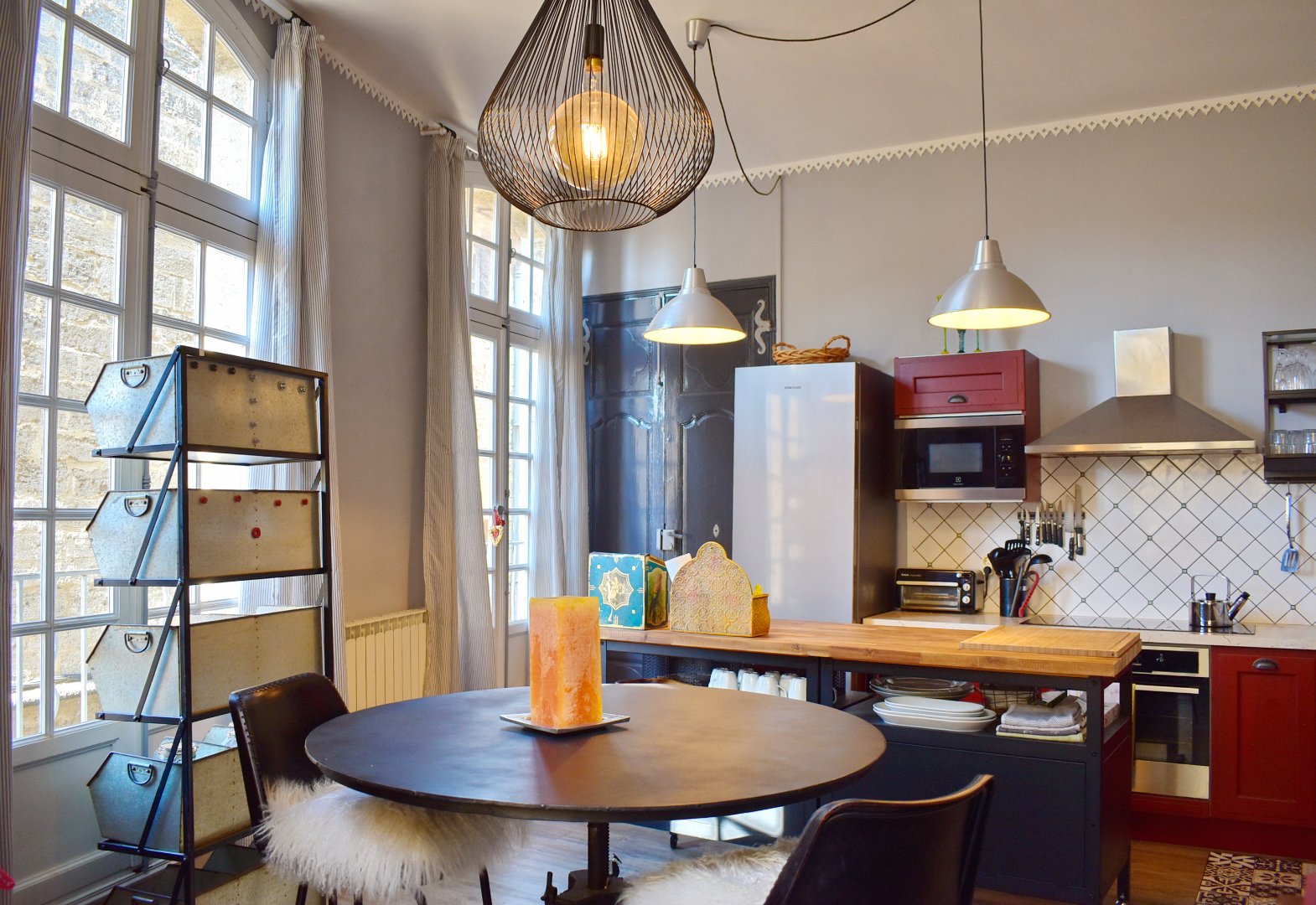 La cuisine, à la fois fonctionnelle et élégante, complète cet espace de vie empreint d'authenticité.