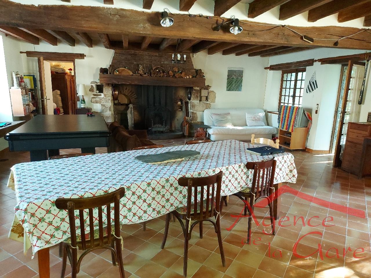 Authentique BRIARDE sur 1.948 m² de jardin arboré comp. au RDC : cuisine équipée ouverte sur salle à manger-salon avec cheminée et poêle à bois 65 m² env, 1 chambre, SdeB, wc.