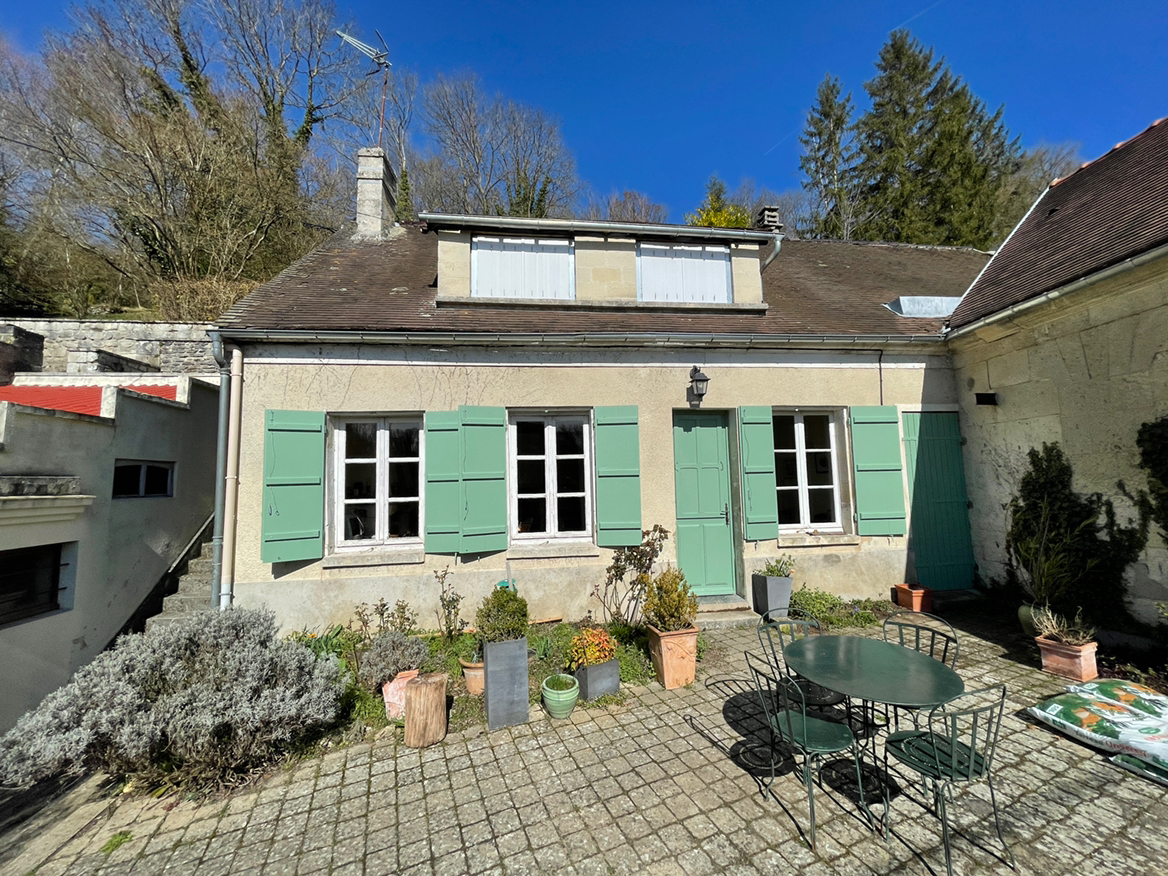 8 MN DE CREPY EN VALOIS Maison en pierre au calme comprenant : une entrée, un salon/séjour avec cheminée donnant sur une belle cave voûtée, une cuisine aménagée, une salle de bains et un WC indépendant. A l'étage : trois chambres et un palier donnant accès a une terrasse exposé plein sud. Un garage et un terrain arboré de 1130m².