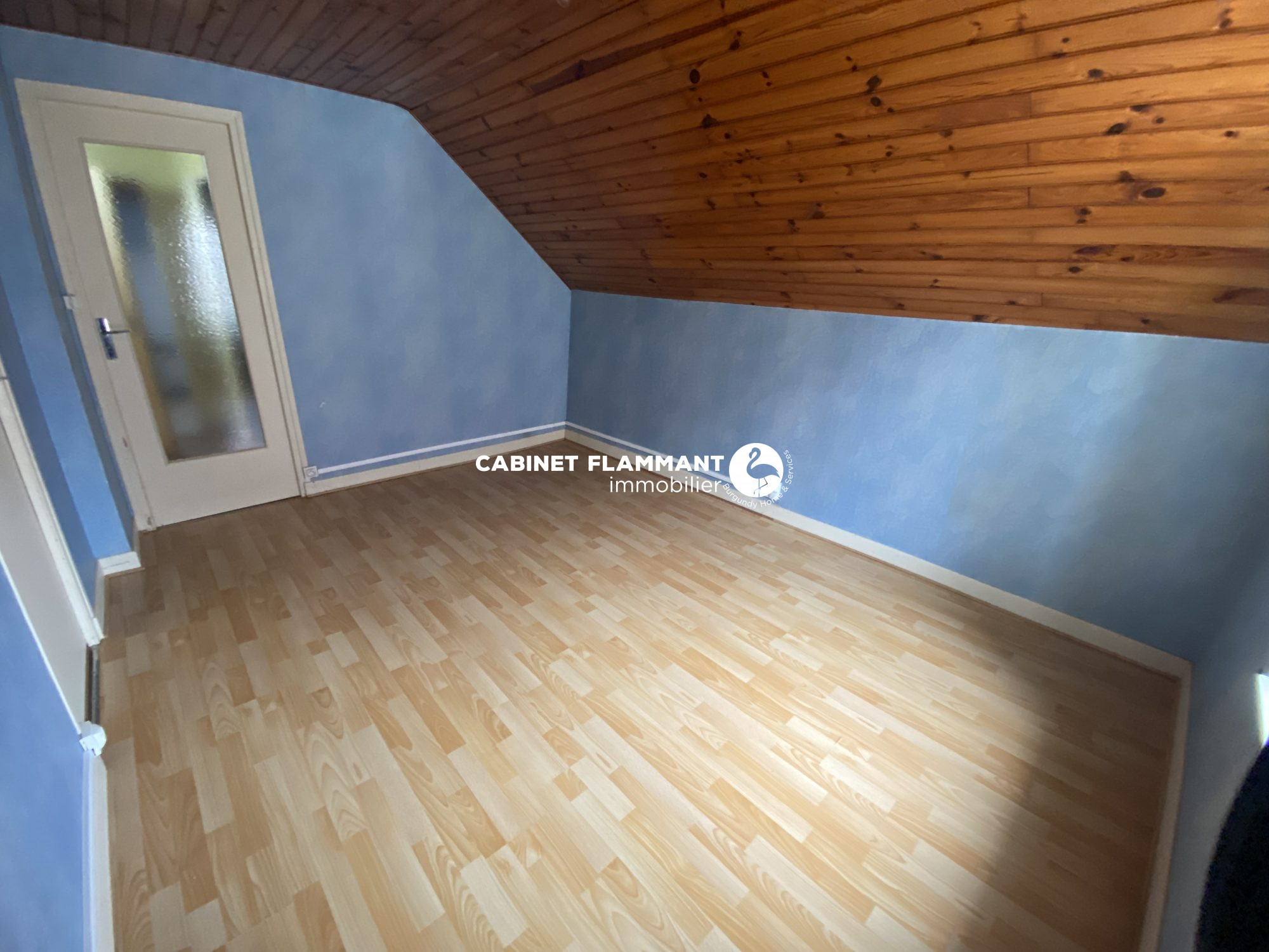 Au 1er étage, un palier desservant deux chambres d'environ 12 m2 et 9 m2, une salle de bains avec meuble sous vasque, un WC indépendant et un grenier aménageable.