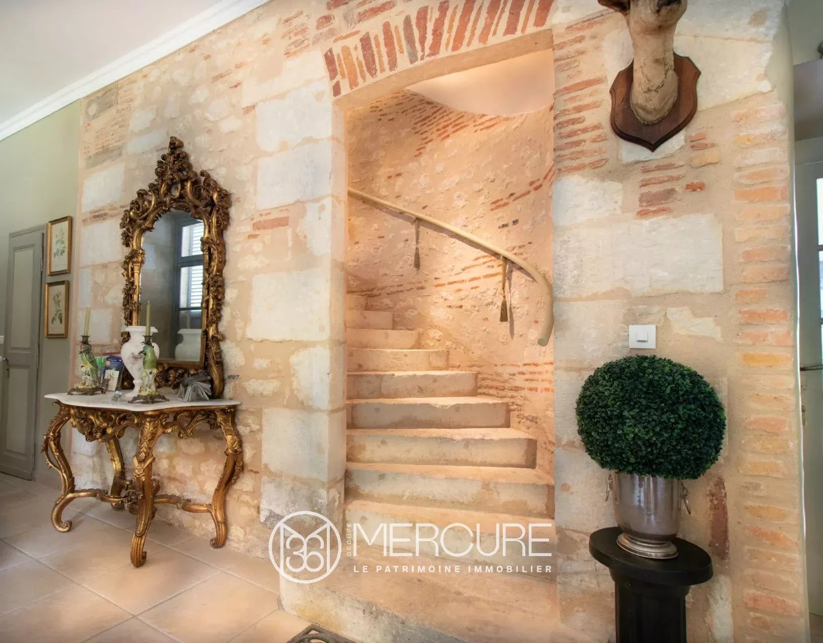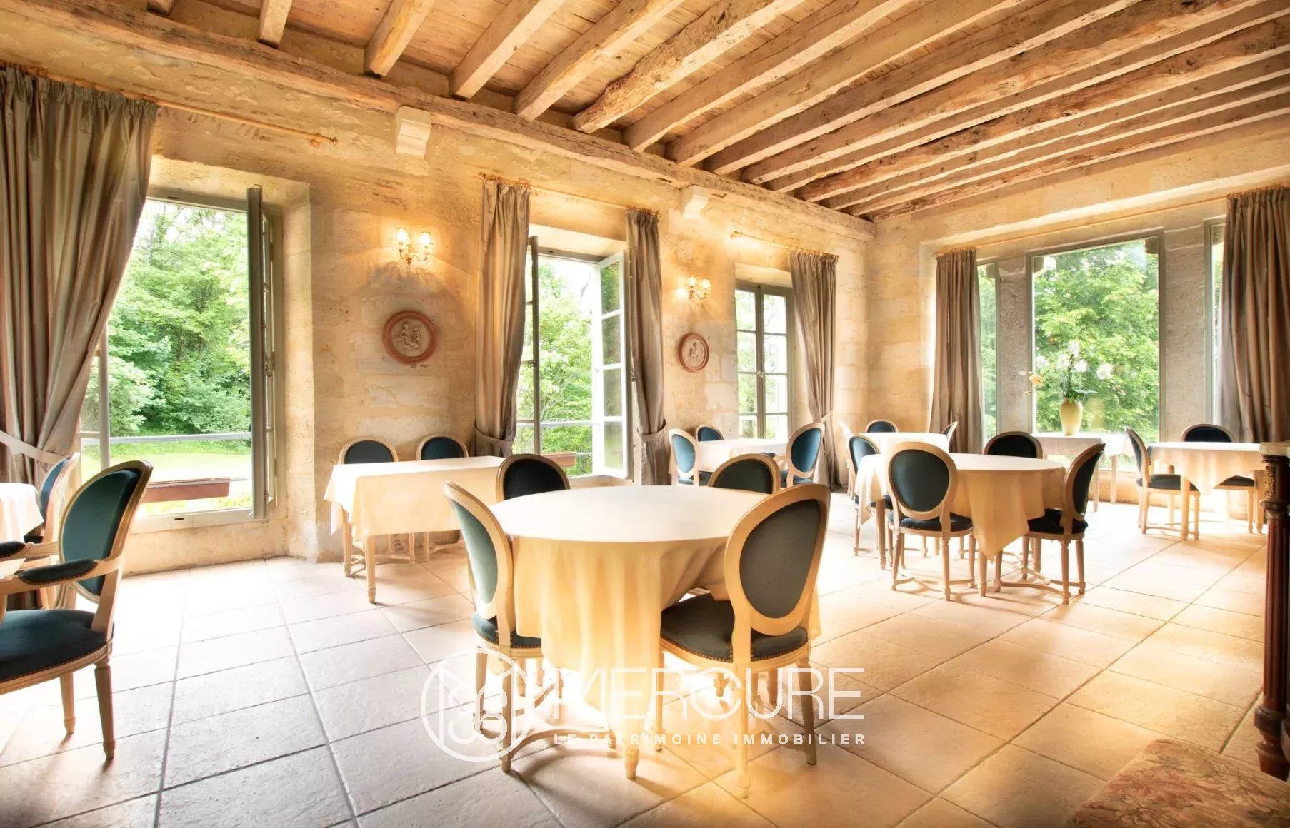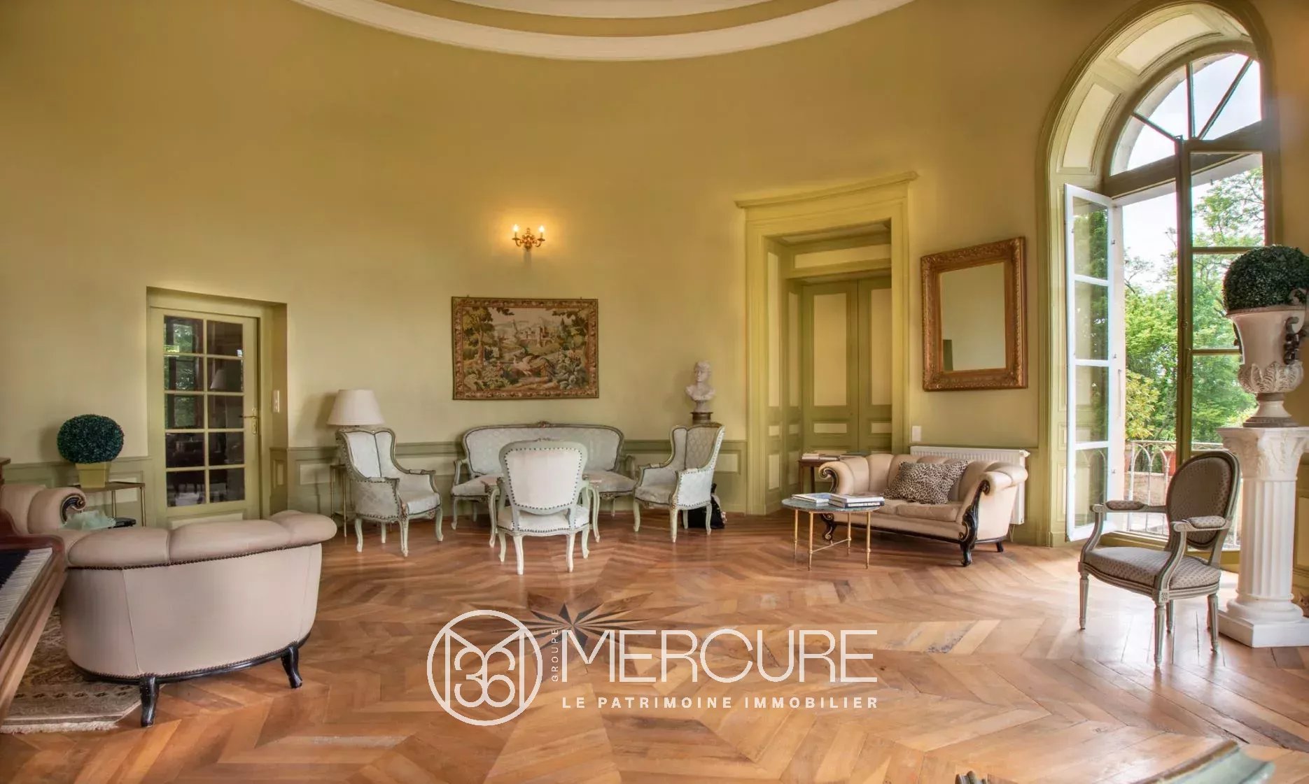Cet élégant château ISMH du XVIIIe siècle, de style néoclassique, de 900m2, domine le paysage et présente avec majesté deux sublimes façades. L’une coupée en demi-lune en son centre et escalier à double révolution, l’autre avec fronton triangulaire. Charme fou d’un salon de musique en rotonde avec parquet à rosace, grands salons de réception et salle à manger à larges ouvertures, salon/bar, bureau, appartement privatif en rez-de-chaussée avec 2 chambres. Au 1er étage, 10 chambres équipées de salles de bains/salles d’eau. Vaste sous-sol avec lingerie et larges caves voutées en excellent état servant de salles de réception. Parc, bois avec allées de promenade, surface : 9 ha, piscine, source, garages, maison de gardien à rénover. Propriété située non loin de Périgueux et toutes commodités.