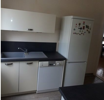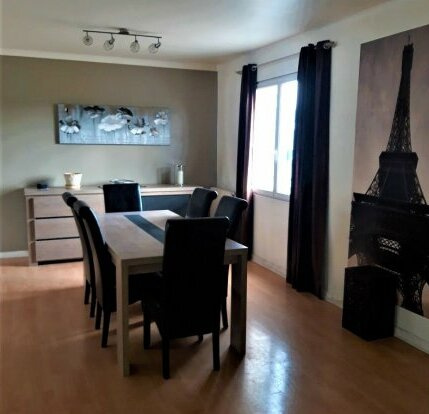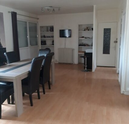 Entrée d'immeuble avec montée d'escalier donnant sur l'entrée de l'appartement, desservant une salle à manger spacieuse ouverte sur le salon, une cuisine incorporée, une buanderie, 2 chambres, salle de douche-WC. Un accès au grenier par la buanderie. Un vaste garage et un local chaufferie (chaudière au gaz de ville). Une grande cour close avec vue sur la rivière (La Brenne). Contactez nous : agence.immo.robin@gmail.com