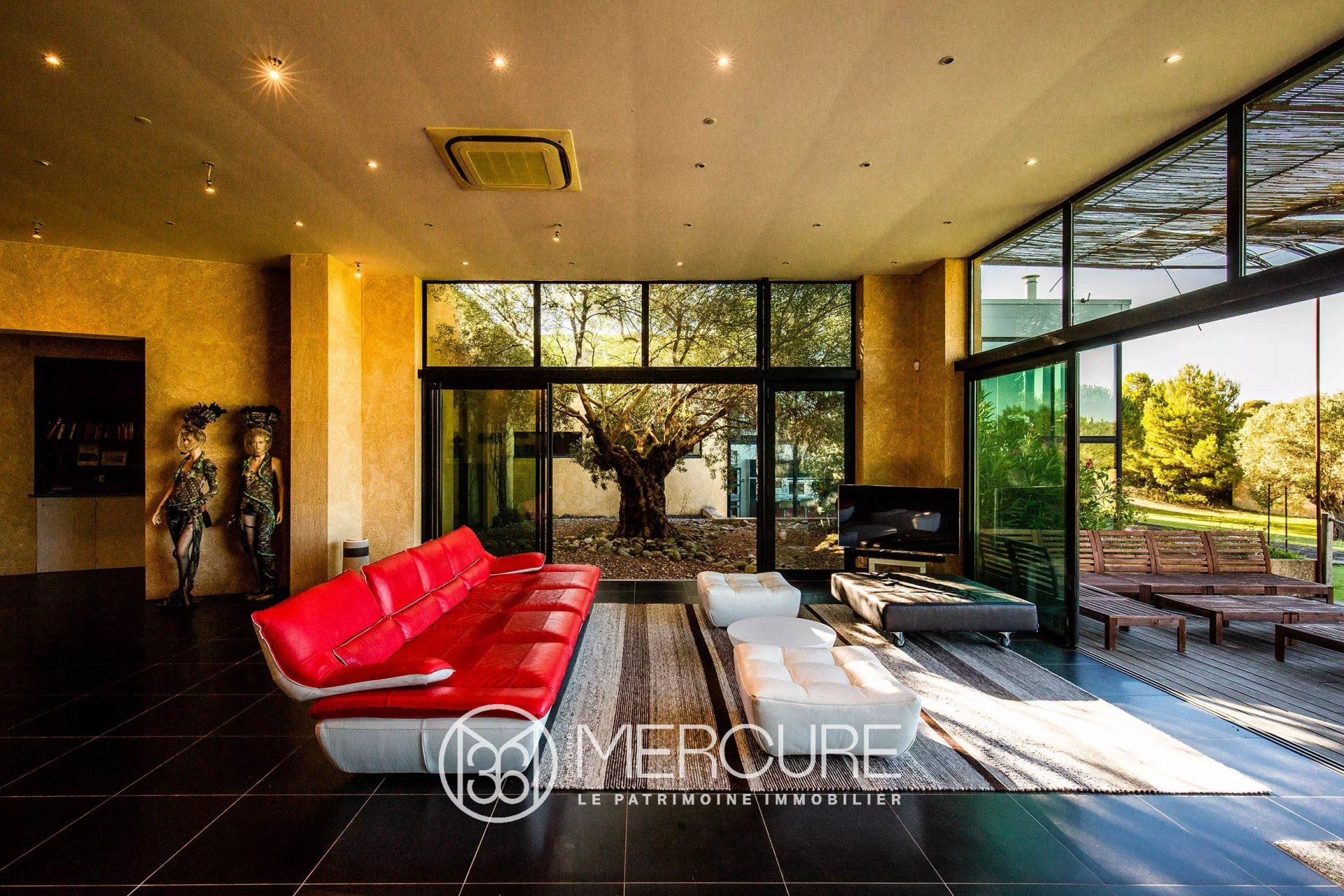 Côté Sud, le salon de plus de 100 m² avec des baies vitrées ouvrant totalement sur le jardin, ainsi que sur le patio avec les oliviers centenaires, vous laissera bouche bée. Ses 5 suites indépendantes spacieuses alliées à la spacieuse cuisine professionnelle équipée aux normes, vous permettra d'imaginer une activité d'hébergement et restauration.