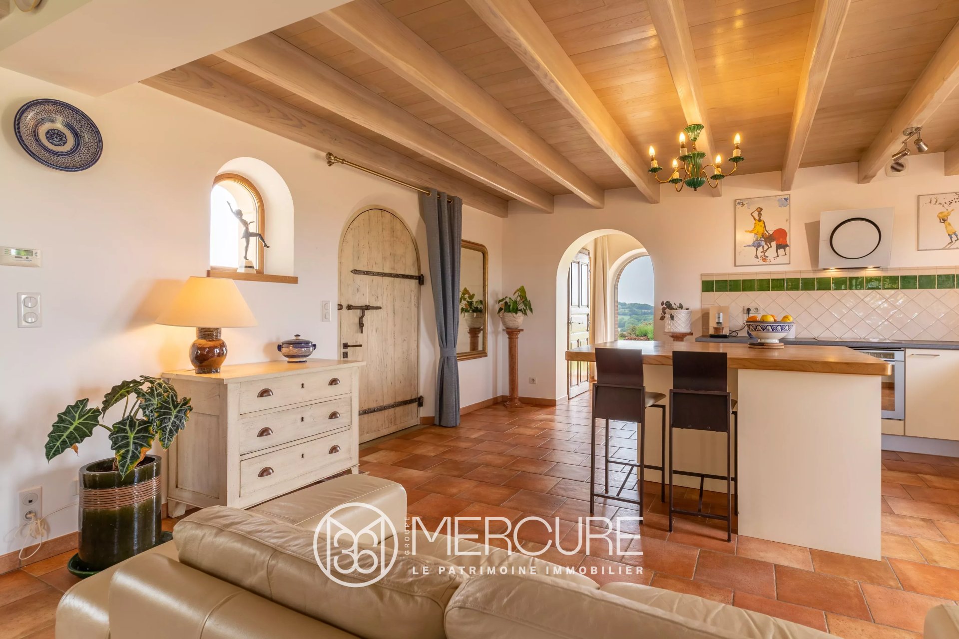 L’espace de vie principal, vaste et contemporain, déploie près de 74 m² baignés de clarté. La cuisine, équipée et structurée autour d’un îlot central, s’ouvre naturellement sur la salle à manger et le salon, où une cheminée en pierre apporte chaleur et...