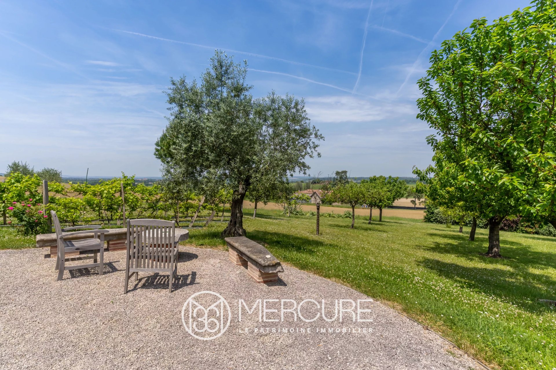 Dès l’arrivée, le regard se perd. La vue, totalement dégagée, embrasse les paysages vallonnés à perte de vue. Le terrain de 1 500 m², piscinable, accueille un verger d’arbres fruitiers, ajoutant à la poésie du lieu. Une parcelle attenante de même superficie peut venir prolonger cet écrin déjà remarquable — une opportunité rare pour qui recherche l’espace sans compromis.