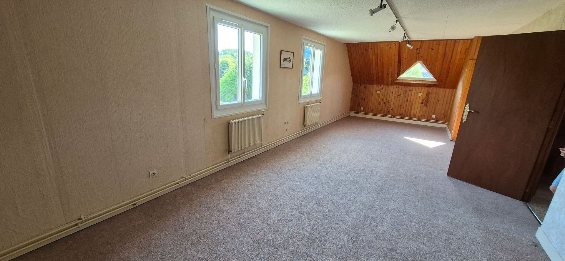 Une grande maison de sept pièces comprenant : une entrée sur dégagement, une cuisine aménagée équipée, un séjour double avec une cheminée insert, deux chambres, une salle de douches et un wc. 1er étage: palier, trois chambres, une pièce à aménager, une salle de douches et un wc. Un sous-sol total avec garage. L'ensemble sur un terrain de 3598m².