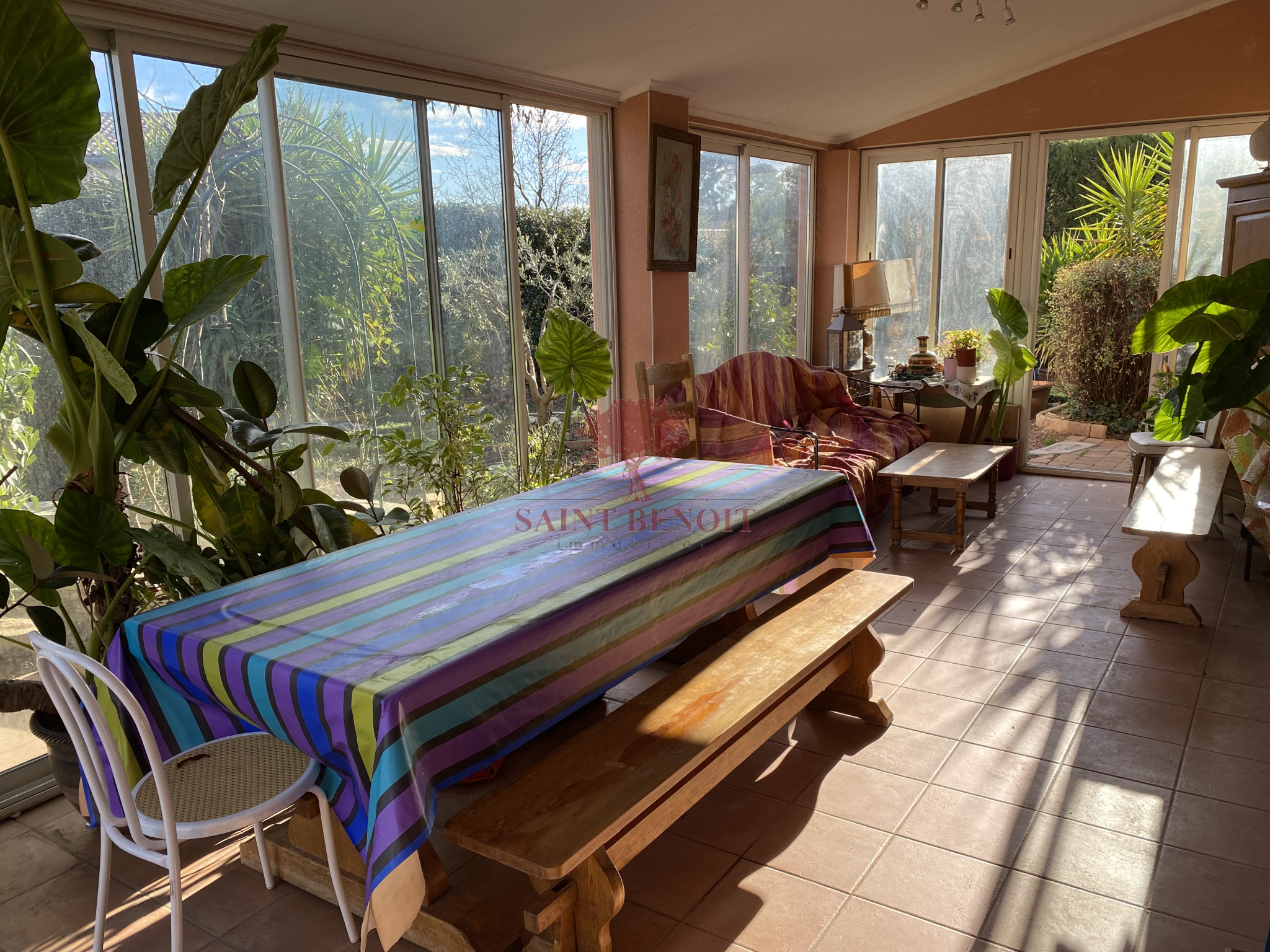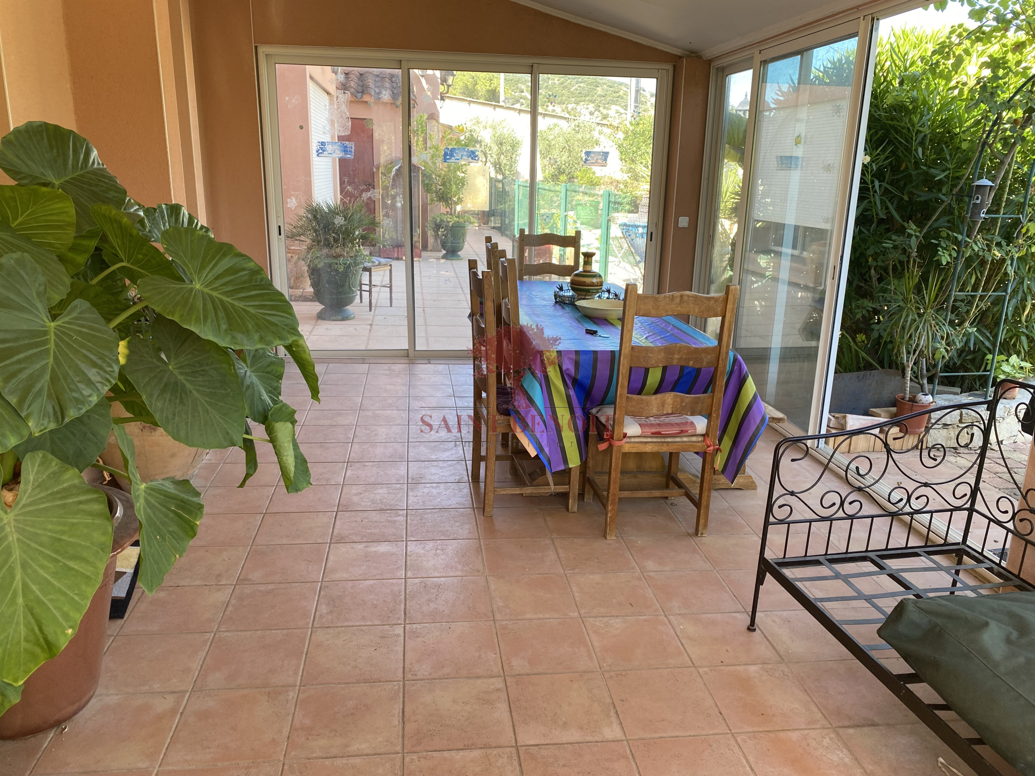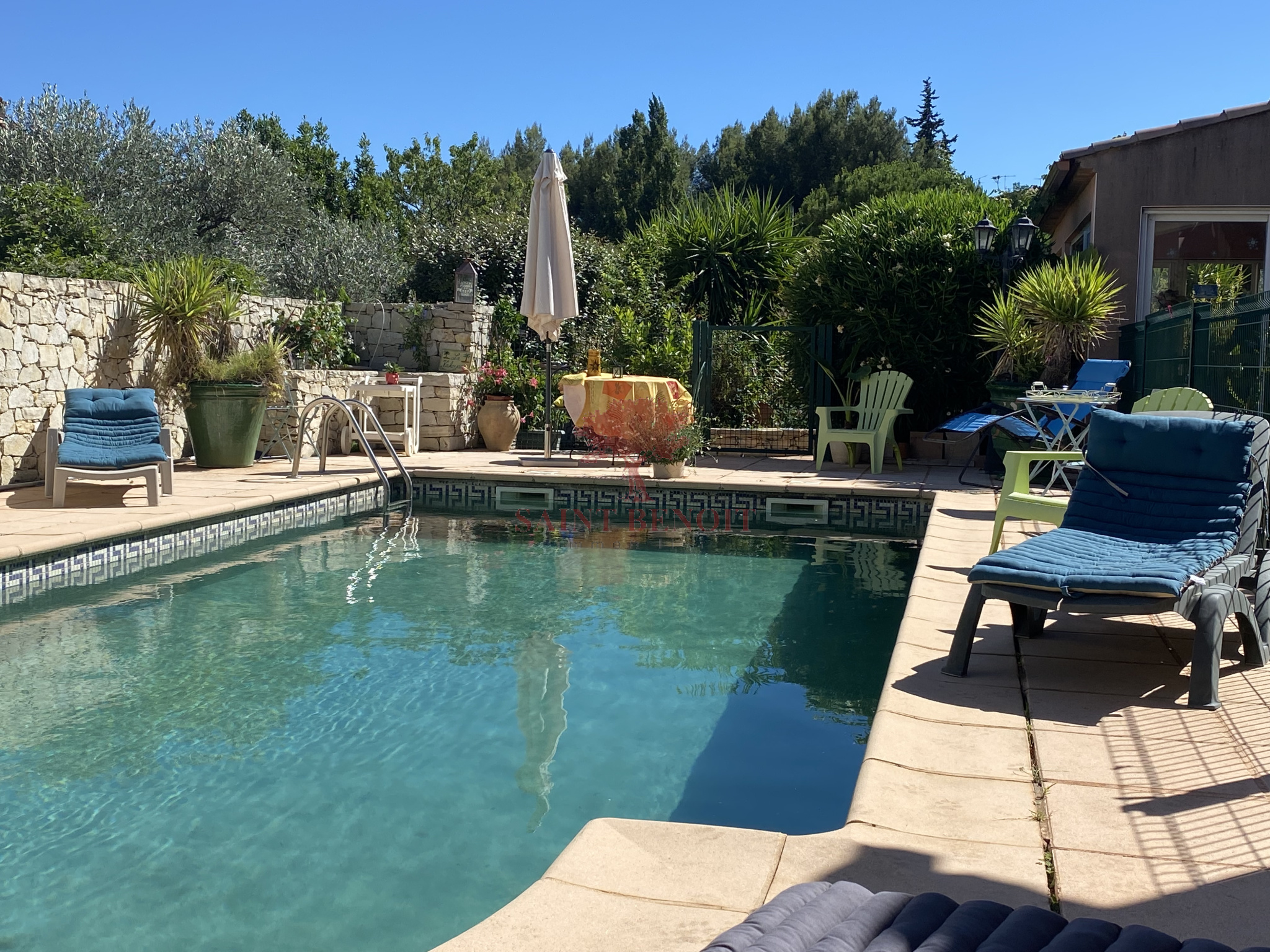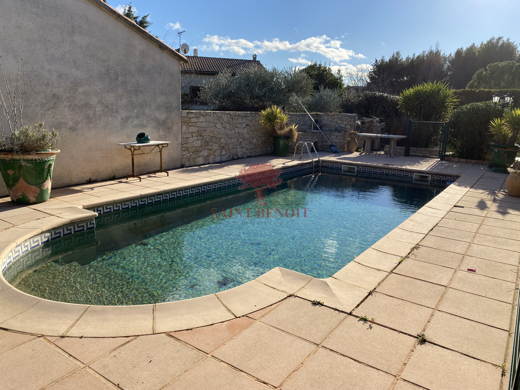 EXCLUSIVITE A VENDRE jolie villa de type cinq pièces, d'une surface habitable de 185 m2 de construction traditionnelle comprenant quatre chambres plus un appartement de type F2 indépendant d'une surface habitable de 28 m2. Jardin arboré de 1200 m2 avec sa piscine exposée plein sud, au calme et sans vis à vis, grand garage de 80 m2 ainsi qu'un garage de 30 m2. Chauffage central. Pour l'achat de cette maison, veuillez contacter l'agence SAINT-BENOIT-IMMOBILIER à ANIANE ou GIGNAC.