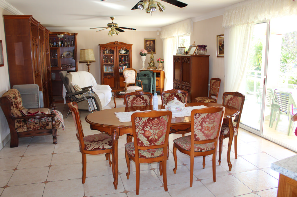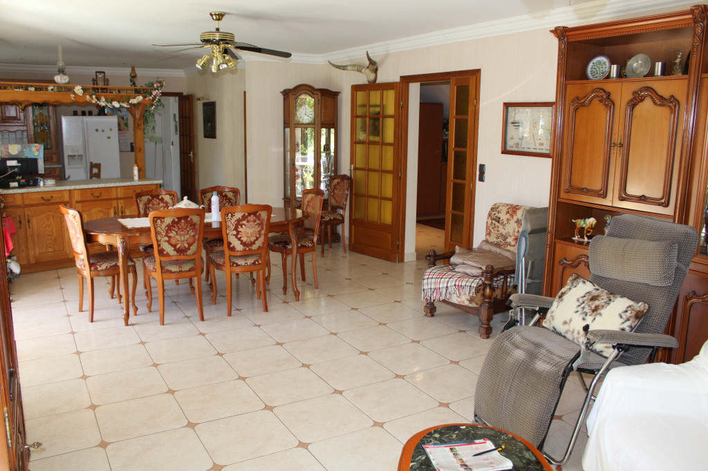 Au rez de chaussée: grande entrée desservant un beau séjour-cuisine de 57 m² qui ouvre sur la terrasse, arrière-cuisine, deux chambres avec salle d'eau et salle de bains, wc, grand garage.