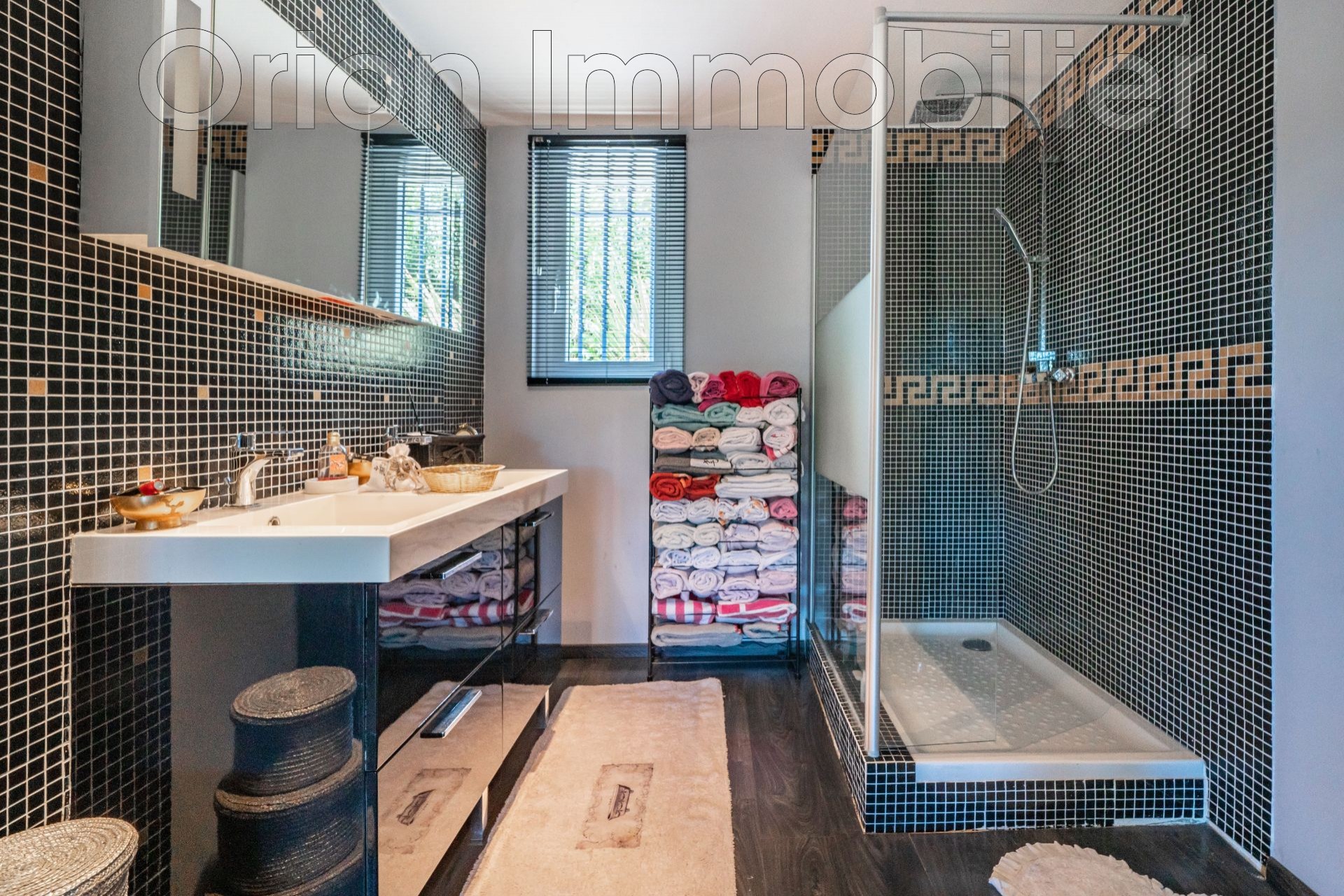 En extérieur, vous profiterez de trois terrasses, d'une piscine, d'un arrosage automatique, d'un portail automatique et de quatre parkings.