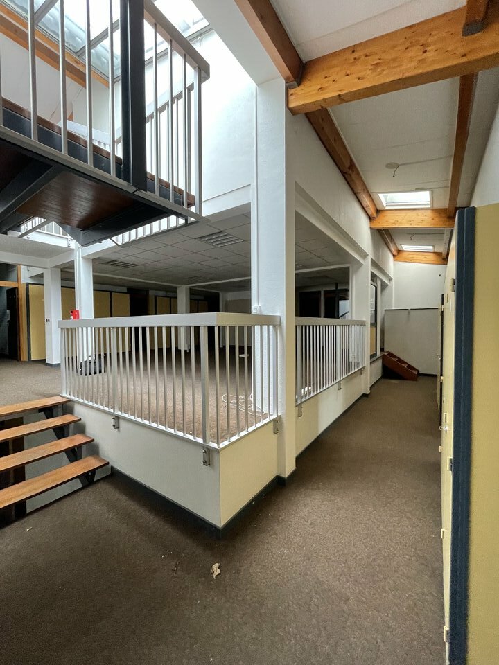 Bâtiment de bureau comprenant au rez-de-chaussée 1 accueil, 10 bureaux cloisonnés, 2 salle de réunion, 1 salle informatique, une cuisine, des sanitaires pour 409m².A l'étage 4 bureaux cloisonnés pour 124 m².Plusieurs pièces avec ouvertures (châssis fixes), porte de garage, local technique, sanitaires, pour une contenance de 409m².Le terrain est clos, avec 2 entrées piétonnes, plus une entrée pour le sous sol accessible en VL et petit fourgon.