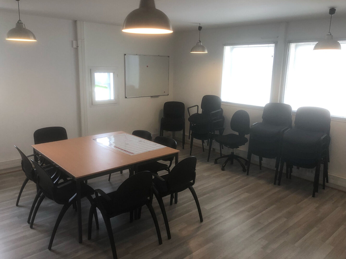 - Étage : salle de réunion, salle de pause, 4 bureaux