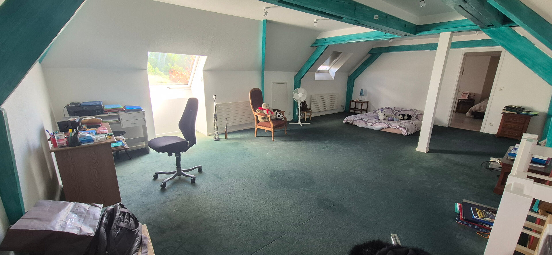 Pavillon sur sous-sol total comprenant une entrée desservant une cuisine aménagée équipée,un séjour double avec cheminée, trois chambres, une salle de bains, une salle de douches et un wc. Étage: sur une grande pièce pouvant être une chambre, une seconde chambre. L'ensemble sur 1491m² clos et arboré.