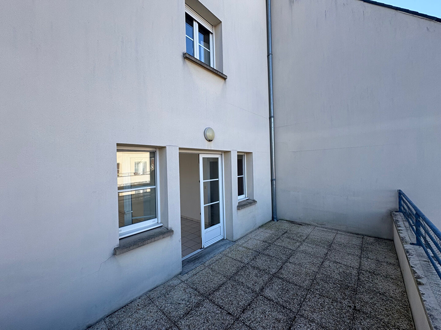 Appartement de type 3 en duplex au 1ème étage d'une résidence sécurisée avec ascenseur comprenant : entrée sur pièce de vie avec accès terrasse (15m²), cuisine et un wc. Étage : palier, deux chambres, salle de bains avec Wc. Deux places de parking en sous sol.