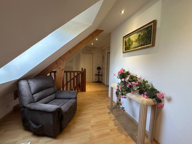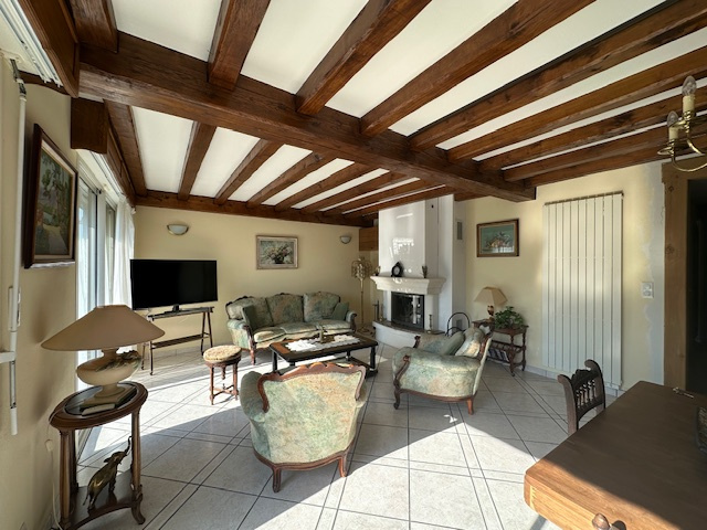 Pavillon de caractère édifié sur sous sol total comprenant : hall d'entrée ouvert sur un séjour et salon avec cheminée insert, cuiisine équipée avec accès terrasse, couloir desservant deux chambres dont une baie coulissante donnant sur la terrasse, salle d'eau avec wc, arrière cuisine et laverie donnant sur un garage de plain pied. A l'étage : palier salon, deux chambres dont une avec balcon, salle d'eau avec WC, grande salle de jeux.Un jardin clos paysagé et arboré de 5000 m2. Contacter Mme Sabrina NARCISSE au 06.62.39.82.79k