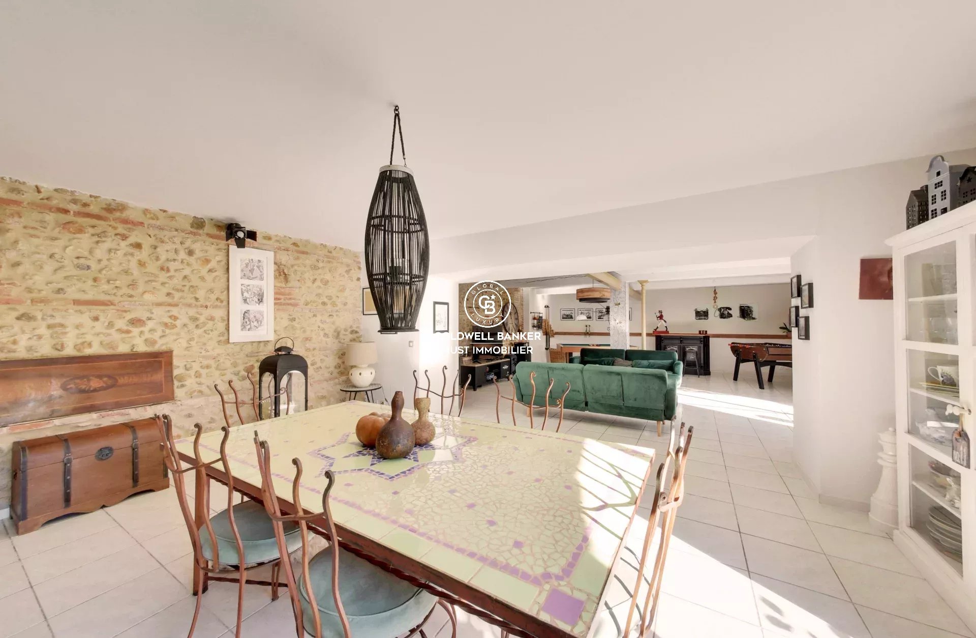 À vendre Chez COLDWELL BANKER dans un secteur très prisé de Perpignan, ce magnifique Mas en pierre allie charme authentique et confort moderne. Niché sur un jardin luxuriant de plus de 900 m², ce bien d'exception dispose d'une piscine, de multiples terrasses, et d'une cuisine d'été idéale pour profiter des belles journées ensoleillées. Avec plus de 370 m² de surface habitable, le Mas s'ouvre sur une somptueuse entrée menant à une pièce de vie lumineuse de plus de 85 m², agrémentée d'une cheminée. La cuisine équipée, ainsi que deux chambres, dont une suite en rez-de-chaussée, complètent ce niveau. À l'étage, un vaste appartement T3 indépendant bénéficie d'une terrasse avec vue imprenable sur le Canigou, offrant un cadre de vie exceptionnel. Entièrement réhabilité, ce Mas propose désormais de grands espaces, parfaits pour accueillir une grande famille dans un cadre enchanteur. Une opportunité rare dans une région prisée, à ne pas manquer.
