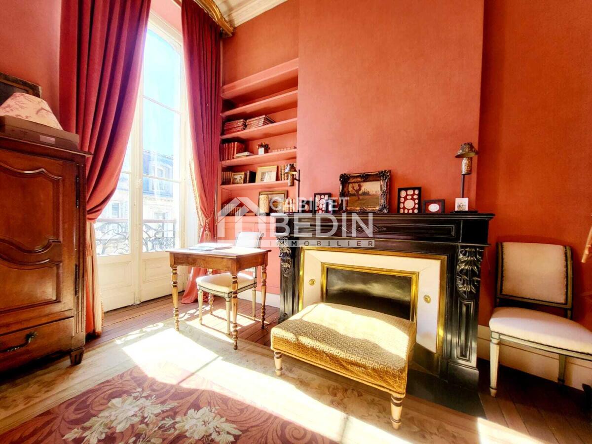 BORDEAUX SAINT-GENES. Au c?ur du quartier prisé de Saint-Genès, ce remarquable hôtel particulier conserve ses prestations d'époque. Au rez-de-chaussée, l'entrée dessert un bureau avec cabinet de toilette, une cuisine séparée et une double pièce de réception traversante ouvrant sur une terrasse ombragée. Au premier étage, un palier dessert deux chambres, dont une avec salle de bains attenante, une suite parentale avec dressing et salle de bains donnant sur un long balcon filant, ainsi qu'un salon TV avec point d'eau attenant. Le second étage comprend trois chambres, un bureau, une lingerie, une salle de bains et des rangements. Le vaste sous-sol est divisé en plusieurs espaces : cave à vin, chaufferie, salle de jeux. Le jardin de belle taille, sans vis-à-vis, invite à dîner dehors lors des soirées d'été. Ce bien de prestige nécessite principalement des rafraîchissements de peinture. Deux parkings en location, situés à proximité immédiate, seront disponibles avec la maison. Les informations sur les risques auxquels ce bien est exposé sont disponibles sur le site Géorisques : www. georisques. gouv. fr. Montant estimé des dépenses annuelles d?énergie pour un usage standard : entre 4250 et 5790 Euros/an (année de référence 2021)