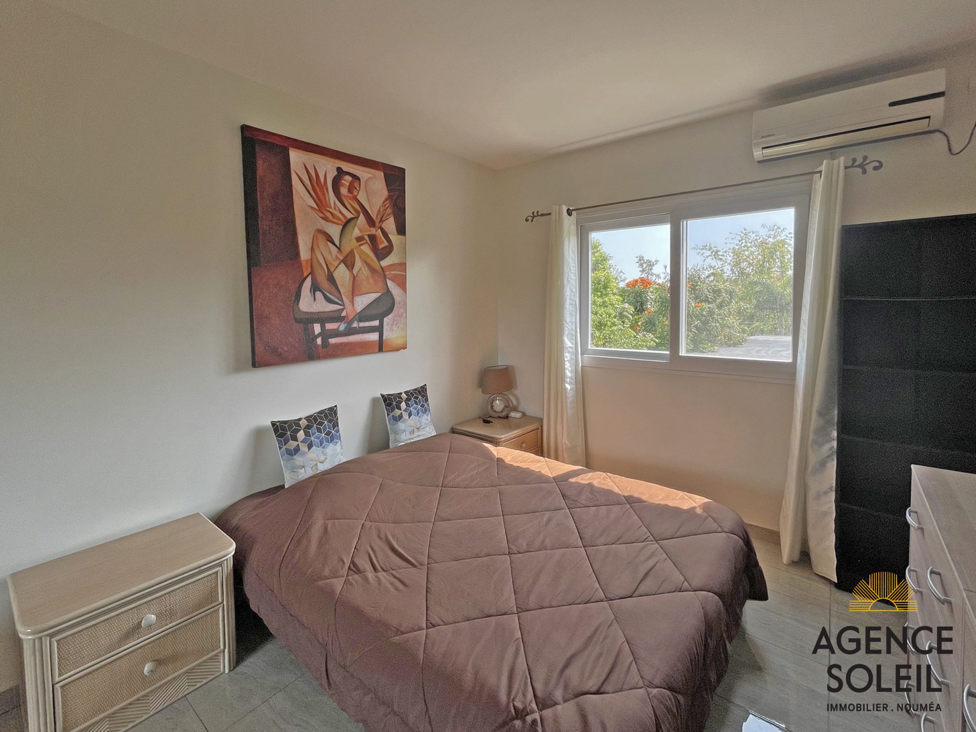 - Une chambre climatisée avec placard