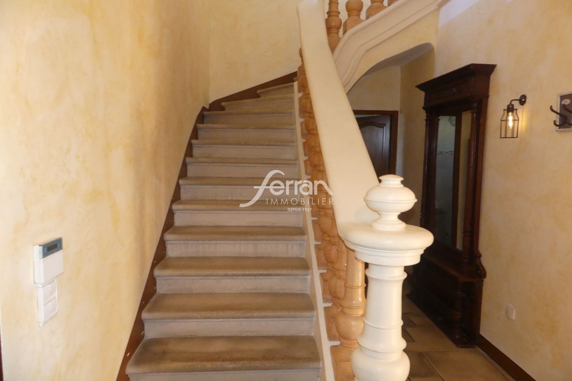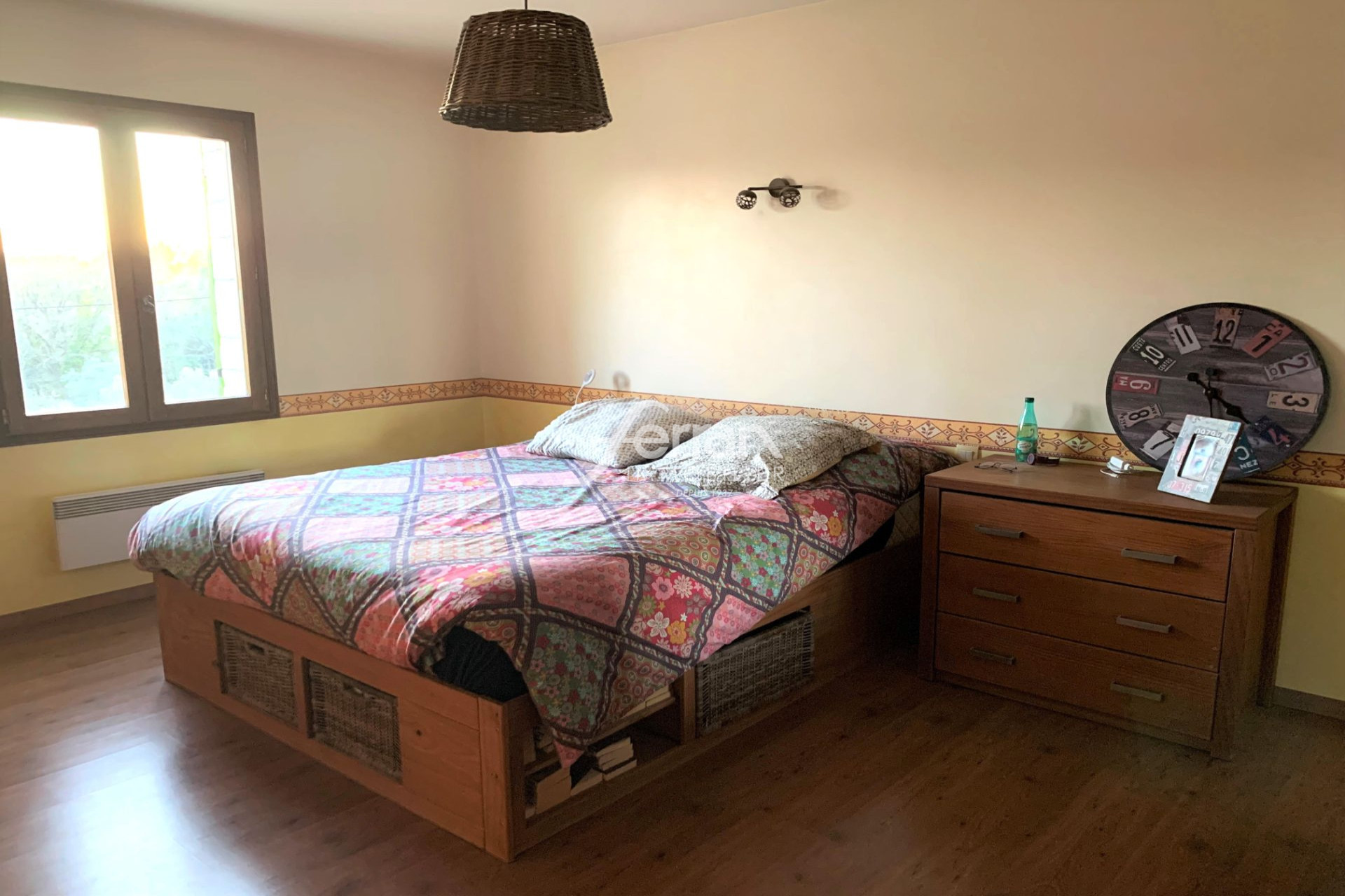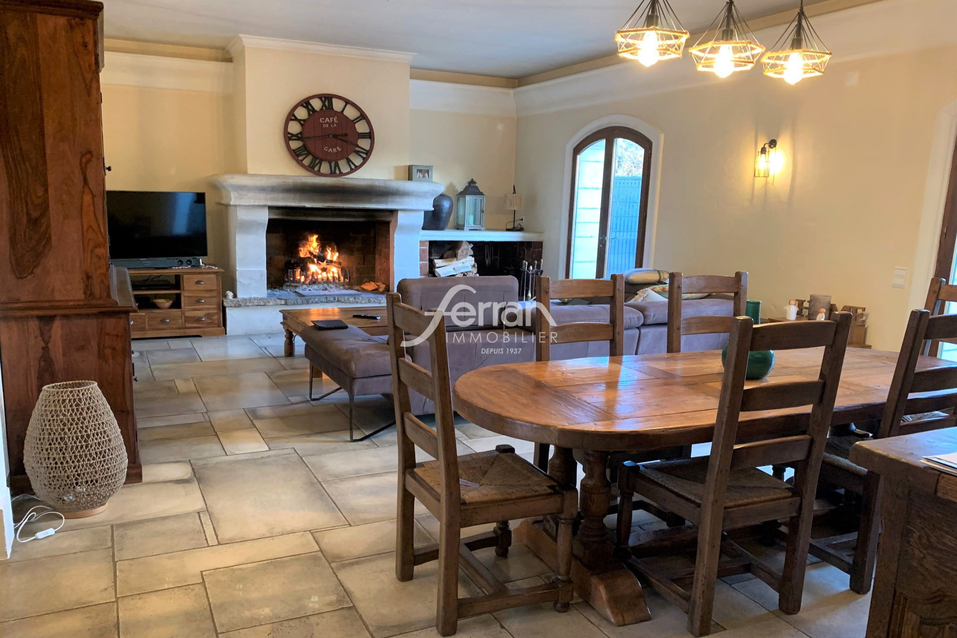 Dans un environnement campagnard calme et agréable, maison de construction traditionnelle d'environ 135m², mitoyenne d'un côté avec une maison de plain-pied, sur un terrain de 3000m² plat et complanté d'essences variées. Cette villa propose en rez-de-chaussée : une entrée, un séjour avec cheminée permettant l'accès à la terrasse exposée au Sud d'où l'on admire une belle oliveraie, une cuisine individuelle équipée récente ouvrant sur la terrasse, un cellier et des wc. A l'étage : 3 chambres dont une suite avec sa salle de bains attenante, un bureau, une salle d'eau et des wc. Ce bien propose également un garage, un atelier et un abri pour 3 voitures. Double vitrage, volets bois, chauffage électrique, portail électrique.