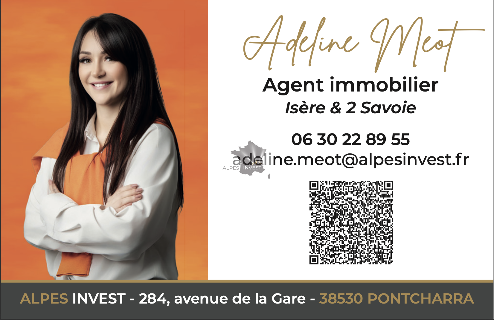 N'attendez plus, contactez dès maintenant notre conseillère ALPES INVEST, MEOT Adeline au O6 3O 22 89 55.