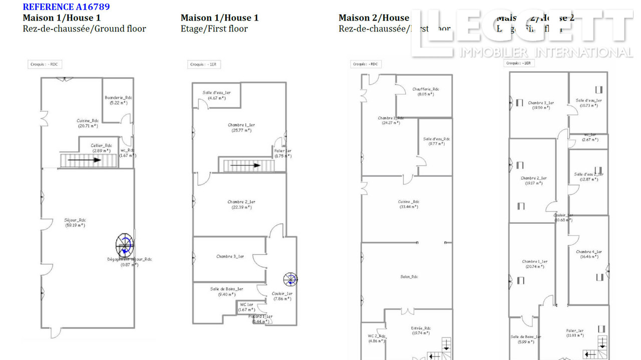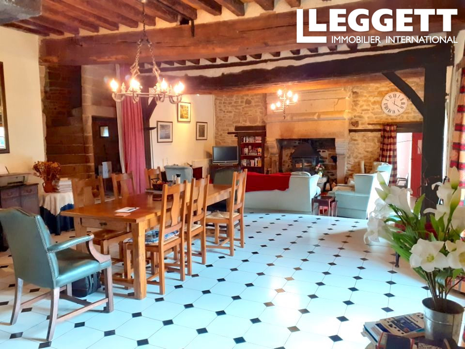 La partie la plus ancienne comprend au rez-de-chaussée : une cuisine, un cellier, un W.-C., une buanderie, un superbe salon/salle à manger de plus de 60 m² avec deux cheminées monumentales.