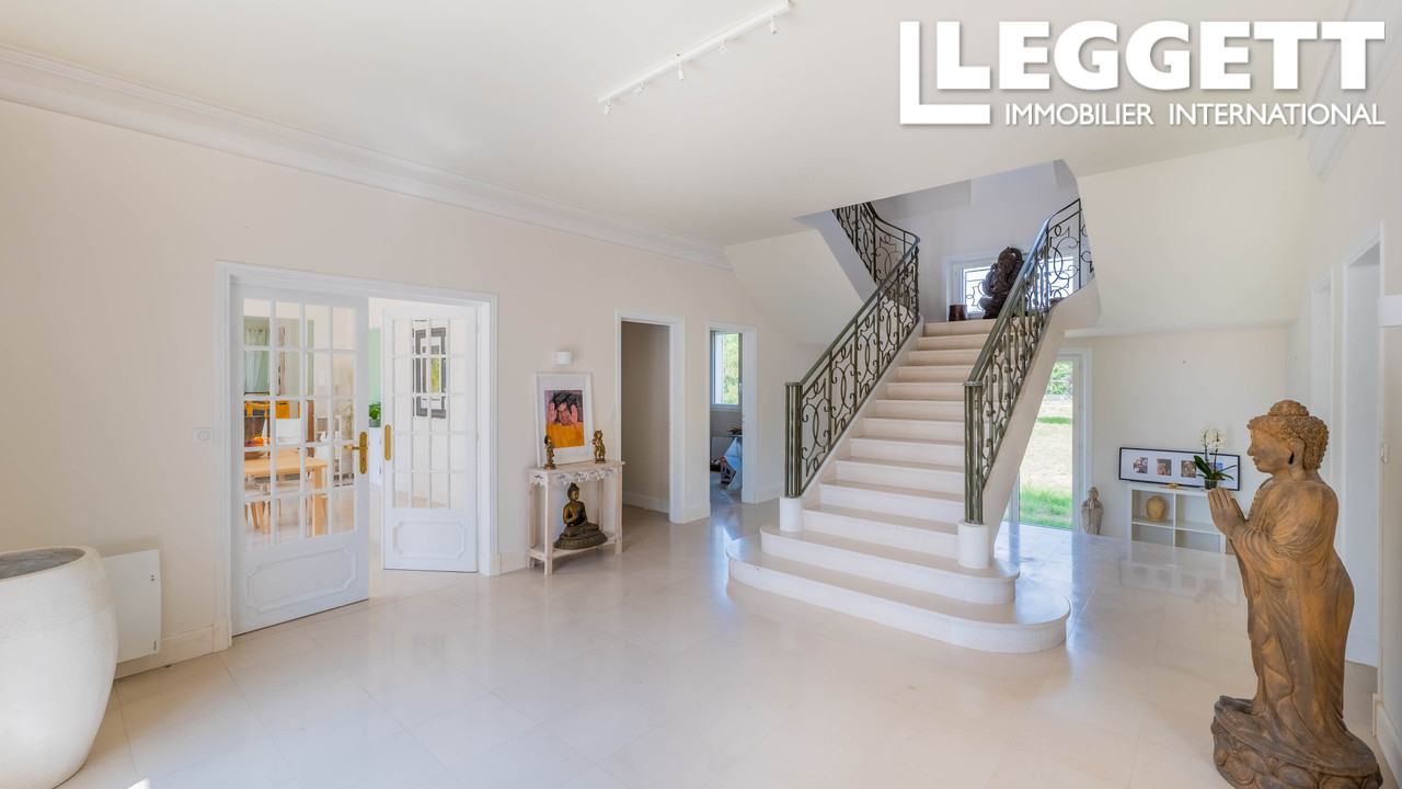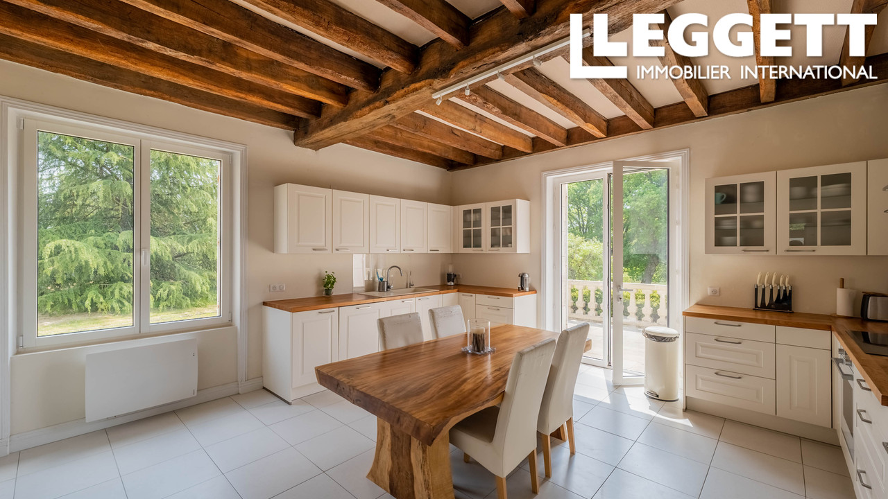 A13214 - Ce havre de paix respire le calme et la tranquillité et conviendra pour une grande maison familiale avec beaucoup d'espace ou une structure professionnelle (gîte, événements, etc.). La propriété comprend 109 hectares de terrain, y compris des bois idéaux pour des promenades privées dans la nature, des prairies adaptées aux chevaux, un verger et des terres de culture biologique qui fournissent déjà un revenu annuel. Les jardins offrent également 2 lacs, une piscine et un court de tennis, sans oublier une terrasse plein sud. Isolée des deux maisons se trouve une immense grange qui pourrait, avec l'autorisation appropriée, être transformée en un espace de mariage/conférence et événements. Les deux propriétés ont été entièrement rénovées au cours des trois dernières années (chauffage, plomberie, électricité, fenêtres) et sont donc en excellent état. La propriété est proche d'un village avec commodités (école primaire, collège, supermarchés).