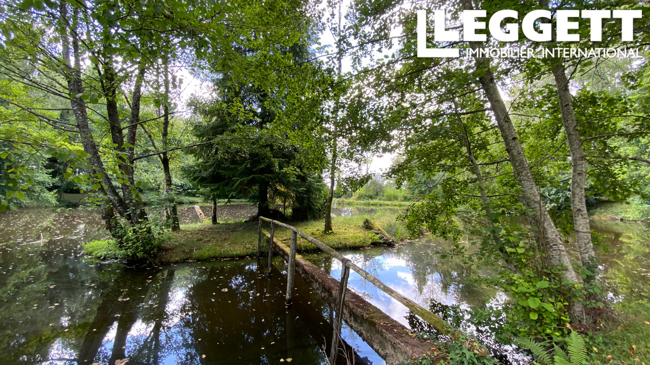 A09523 - Cadre exceptionnel pour cet étang situé au coeur de la nature, une partie étang boisé avec petite passerelle menant à un ilot, et un deuxième étang.