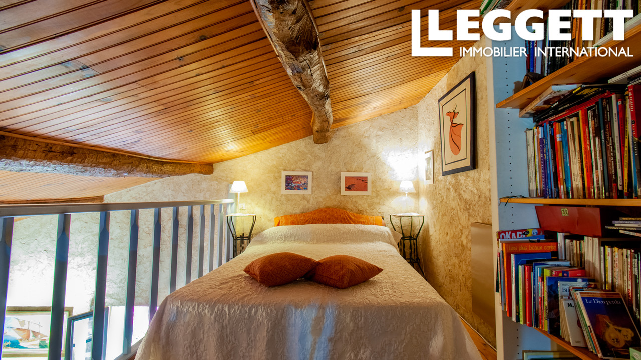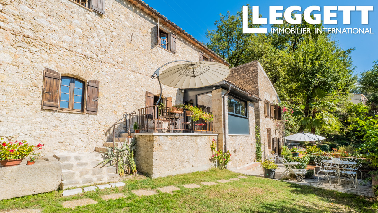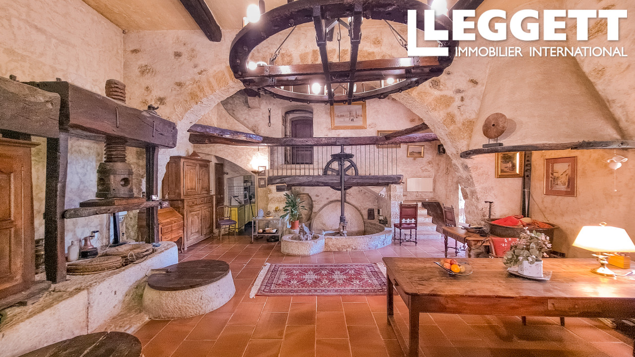 A14004 - Cet ancien moulin est un bien atypique et rare. Datant du 17e siècle avec une histoire traçable, la charmante grande maison / bastide en pierre d'une surface habitable d'environ 250 m² est exposée plein sud et comprend deux ailes qui sont interconnectées par un passage au milieu du bâtiment où se situait l'ancienne roue à aubes du moulin dont la moitié est toujours préservée.