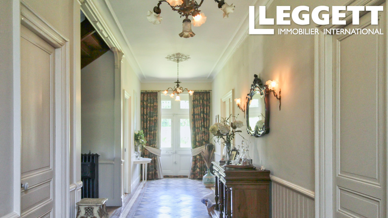 A07748 - Ce magnifique manoir offre quatre chambres avec salle de bains privative. D'autres pièces sont à rénover pour créer des chambres supplémentaires ou des espaces de vie. Vous entrerez dans le grand hall d'entrée au carrelage raffiné, puis dans le vaste et élégant salon et la salle à manger attenante, tous deux ayant conservé de beaux éléments d'origine tels que des plâtres ornés aux plafonds, des boiseries et des cheminées à foyer ouvert. La maison dispose d'un jardin clos à l'arrière, tandis que le domaine s'étend sur environ 4 hectares, comprenant des prairies et des bois matures. Plusieurs dépendances en pierre et une grande grange offrent un vaste espace de rangement, d'atelier ou peuvent être aménagées en logement indépendant si besoin. Grâce à son caractère, son espace et sa polyvalence, cette propriété se prête à de multiples usages : domaine familial accueillant, hôtel de charme, lieu de réception de mariage ou chambres d'hôtes de charme dans un cadre champêtre et privé.