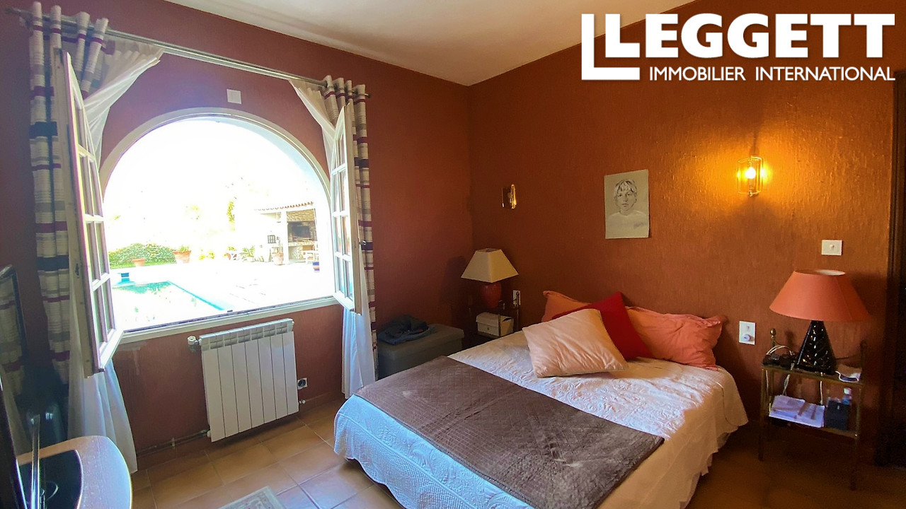 A12682 - Unique maison d'architecte avec 4 chambres dont deux sont au rez-de-chaussée. Grand terrain, belle piscine, dans une situation très privative dans ce village recherché. Tous commerces, restaurants et le grand marché animé de dimanche sont à quelques minutes à pied. Le tout entouré des vignobles du Saint Chinianais dans un paysage magnifique.