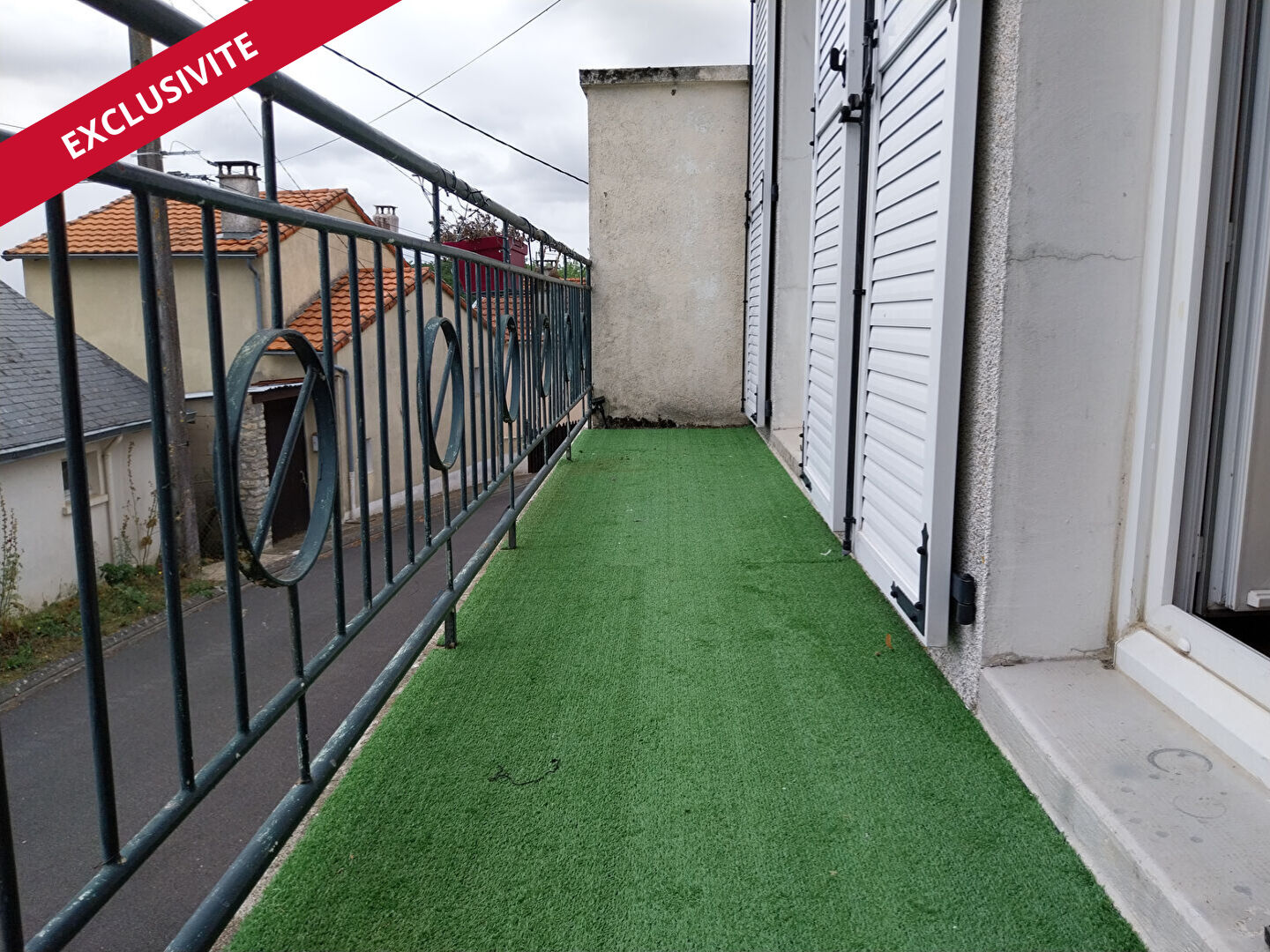 Deux pièces à l'étage ouvrent sur un petit balcon, avec un bel ensoleillement.