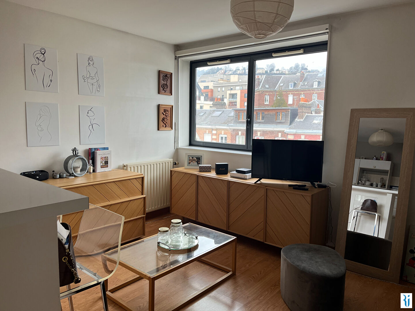 À Rouen rive droite, rue Stanislas Girardin, au sein d'une résidence Kaufman , Broad datant de 2000, découvrez ce charmant F2 de 35 m² situé au 4ème et dernier étage avec ascenseur. Il se compose d'une entrée avec placard, d'un séjour lumineux avec cuisine ouverte, d'une chambre ainsi que d'une salle de douche avec WC.