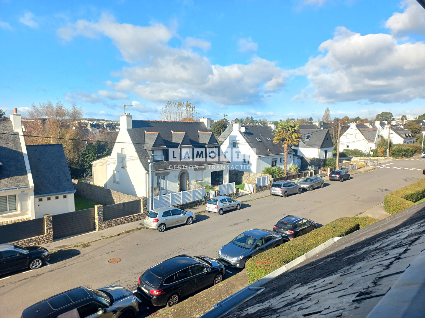 LAMOTTE TRANSACTION vous propose à VANNES secteur Ouest, quartier de la Madeleine, proche du centre ville et de ses commodités (Carrefour City, Boulangerie, Tabac Presse, professions libérales, centre commercial Carrefour Vannes, Bus...), dans un environnement calme et résidentiel, un appartement traversant de type 2 au 2ème et dernier étage de la résidence d'une surface habitable d'environ 48m2 Loi Carrez (58 m² au sol) offrant : entrée avec placard, séjour salon d'environ 20 m², cuisine séparée avec son cellier, dégagement avec placard, salle de bains et cabinet de toilette.