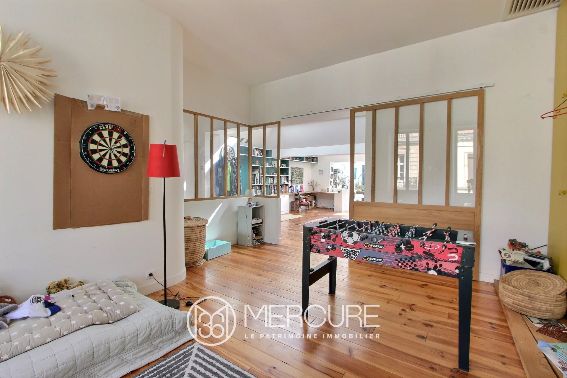 Dans le quartier prisé des Chartrons à Bordeaux, découvrez cet appartement de 190 m² (6 pièces) offrant calme et belle lumière. Aménagé au premier et dernier étage, cet ancien chai a été rénové par une architecte d'intérieur pour créer un habitat contemporain adapté à un usage mixte (habitation ou bureaux).