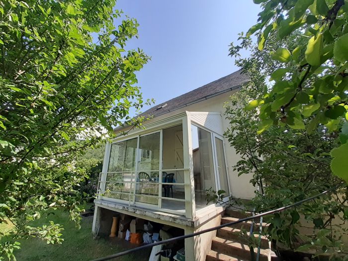 Jolie maison située à ARGENTAT totalisant environ 110 m² et composée en RDC d'une entrée desservant une cuisine ouverte sur le séjour ainsi que sur une véranda, une salle d'eau, un WC et deux chambres.