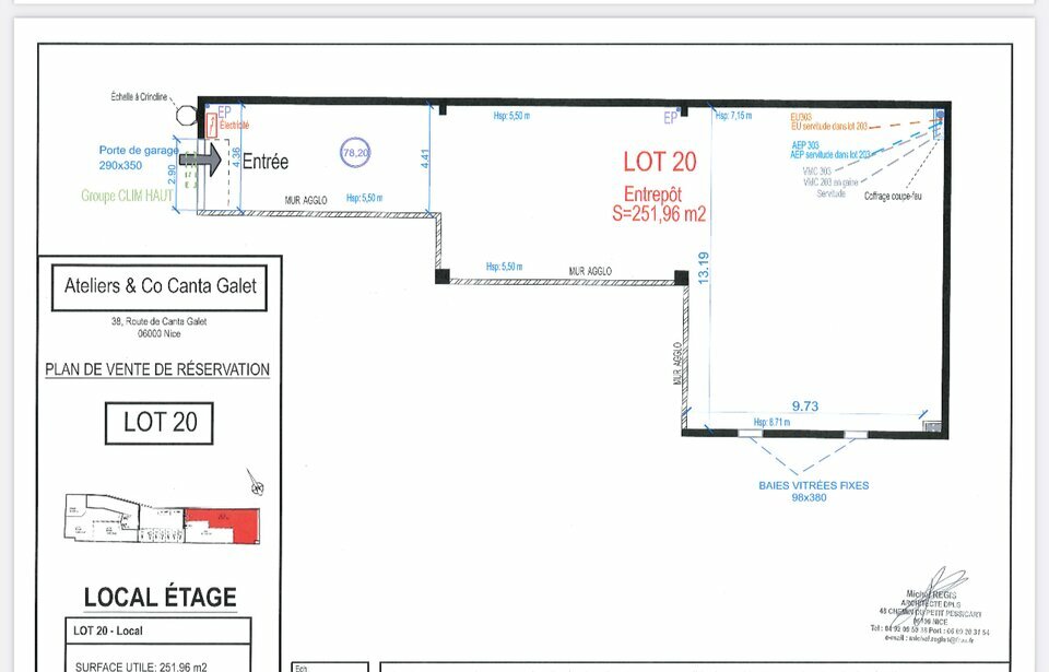 Locaux d'Activités d'une surface de 252m2 neufs livré fin 2024, Hauteur sous plafond de 5,5m à 8,70m, charge admissible 1.5To, accès par une rampe au 1er étageFrais de notaires réduits.