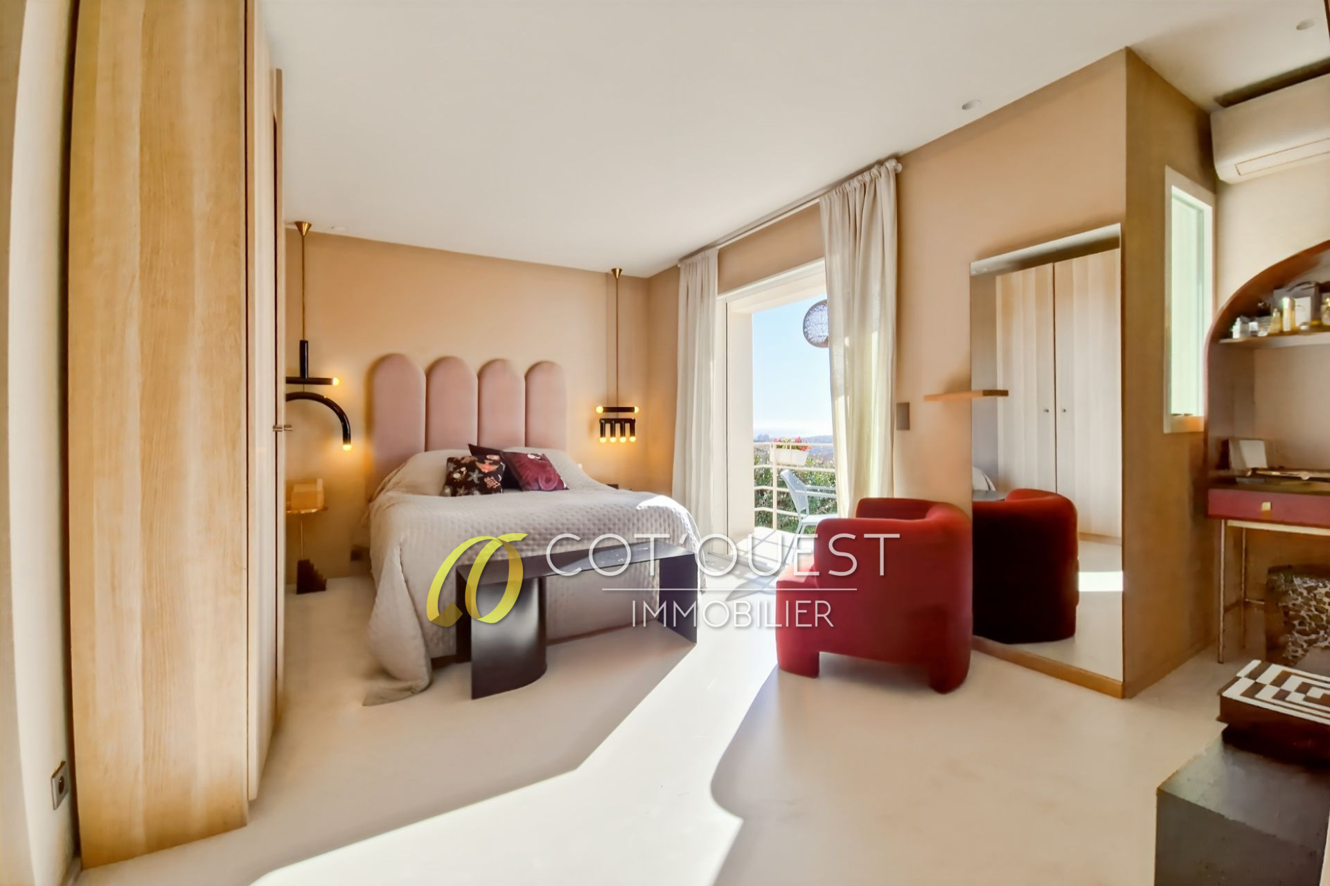 CORNICHE FLEURIE, située au c½ur d'un domaine intimiste et sécurisé, cette magnifique villa contemporaine est un véritable bijou, très belle rénovation par un architecte, cette villa offre une vue imprenable sur la mer, le Cap d'Antibes et les montagnes, elle incarne le luxe, le confort et le raffinement.