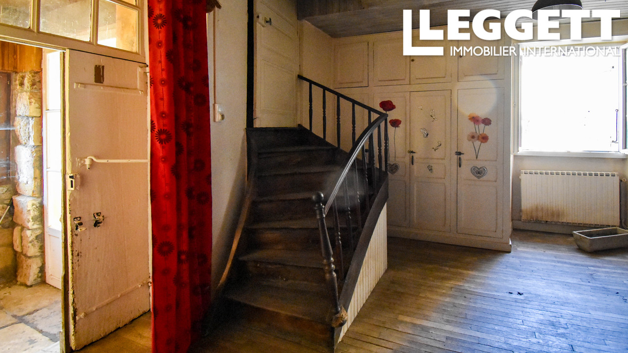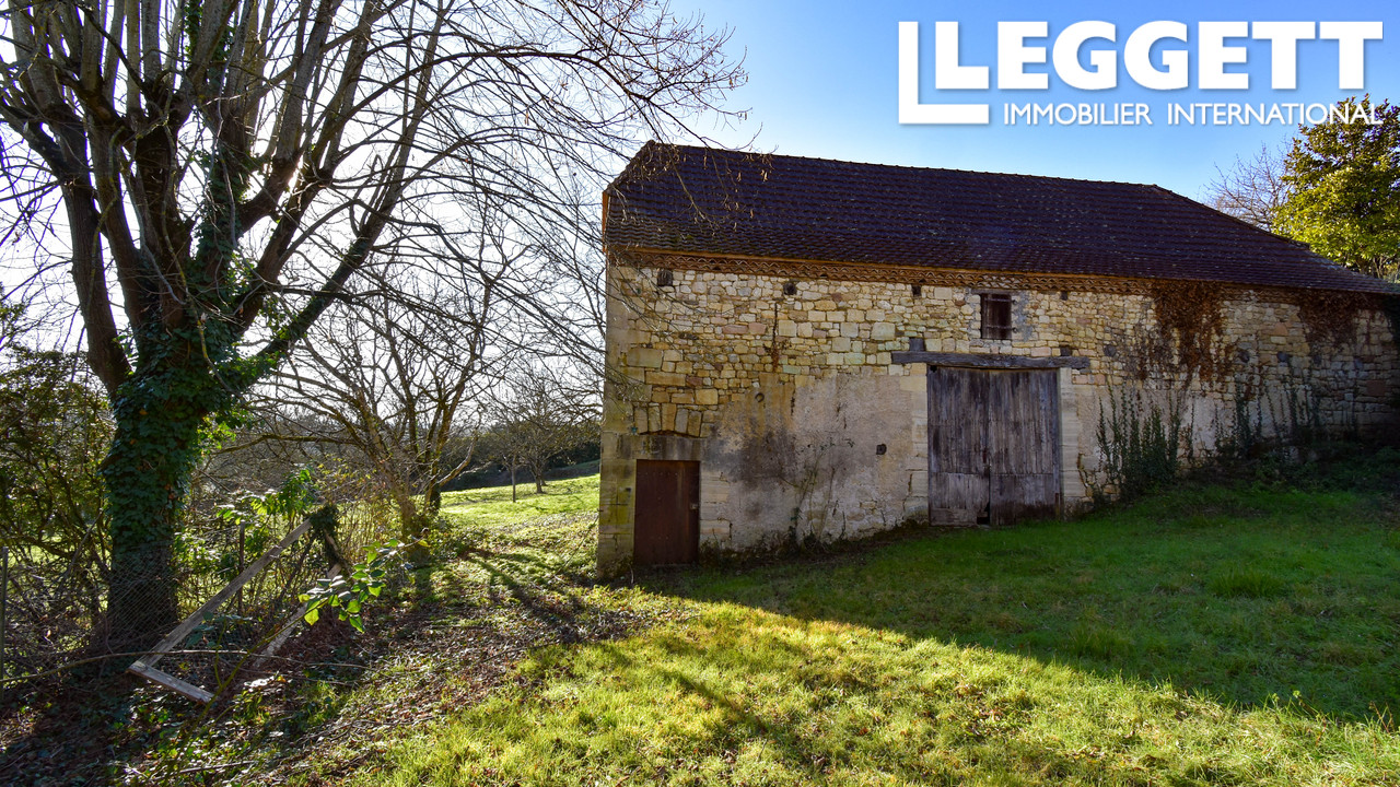 A19690LBC24 - Ensemble immobilier se trouve au centre d'un petit village paisaible de dordogne et consiste de la maison principale avec 5 grandes pieces, grenier de 95m2 a amenager, caves voutees, granges, abris, sechoir a noix et dependances en bord de route avec utilisation commerciale possible.