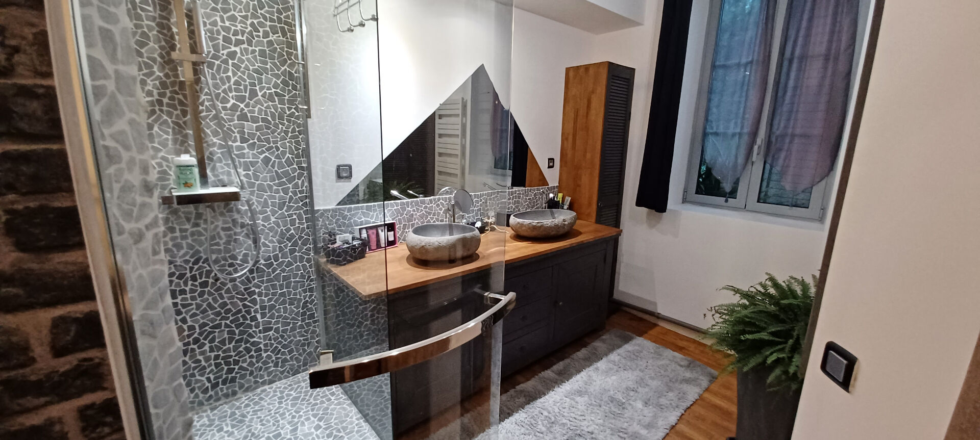 Une entrée sur cuisine aménagée équipée-salle à manger, un grand séjour double, un wc. 1er étage: sur un palier avec une petite pièce, une chambre, un couloir, une chambre parentale avec salle de douche privative, un wc, une chambre avec douche. 2ème étage: Une grande chambre. Un bâtiment. Une terrasse. L'ensemble sur un terrain de 471m².