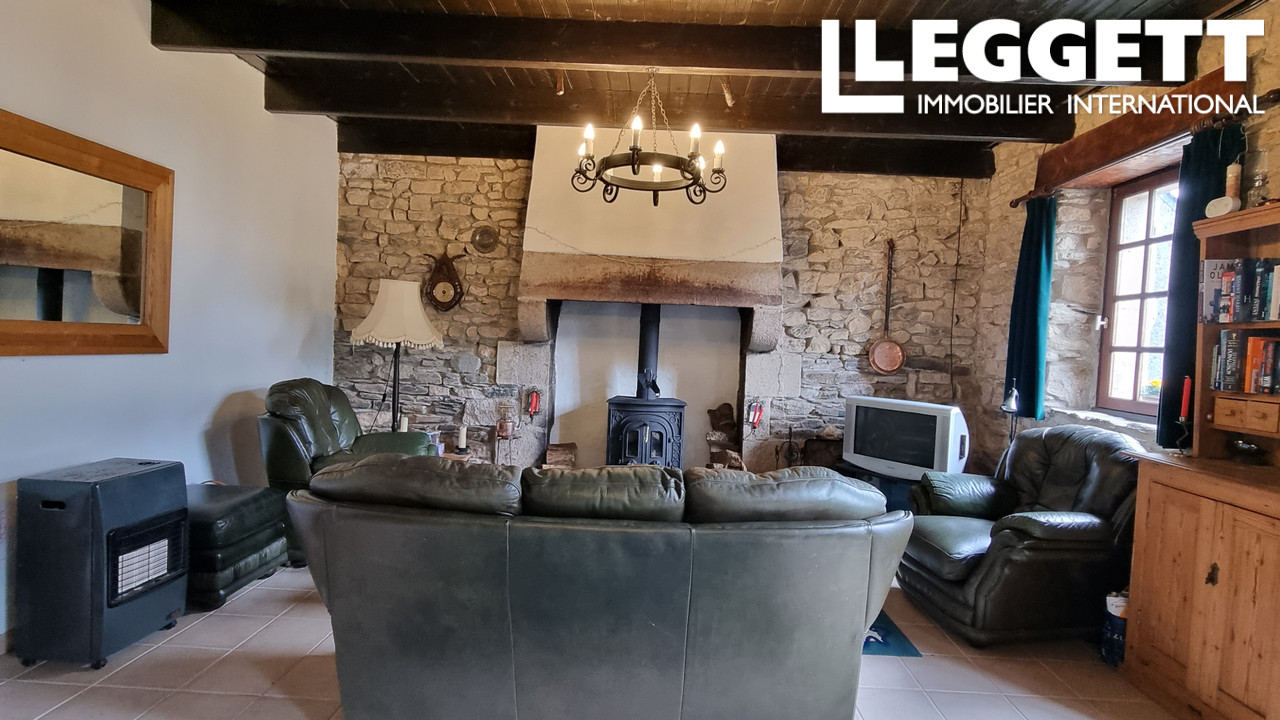 A20485JRD29 - Située dans un hameau paisible de Botsorhel, près de Guerlesquin et à seulement 30 minutes de la côte, cette charmante maison de 3 chambres est située sur plus de 6000 m² de bois menant à la rivière.