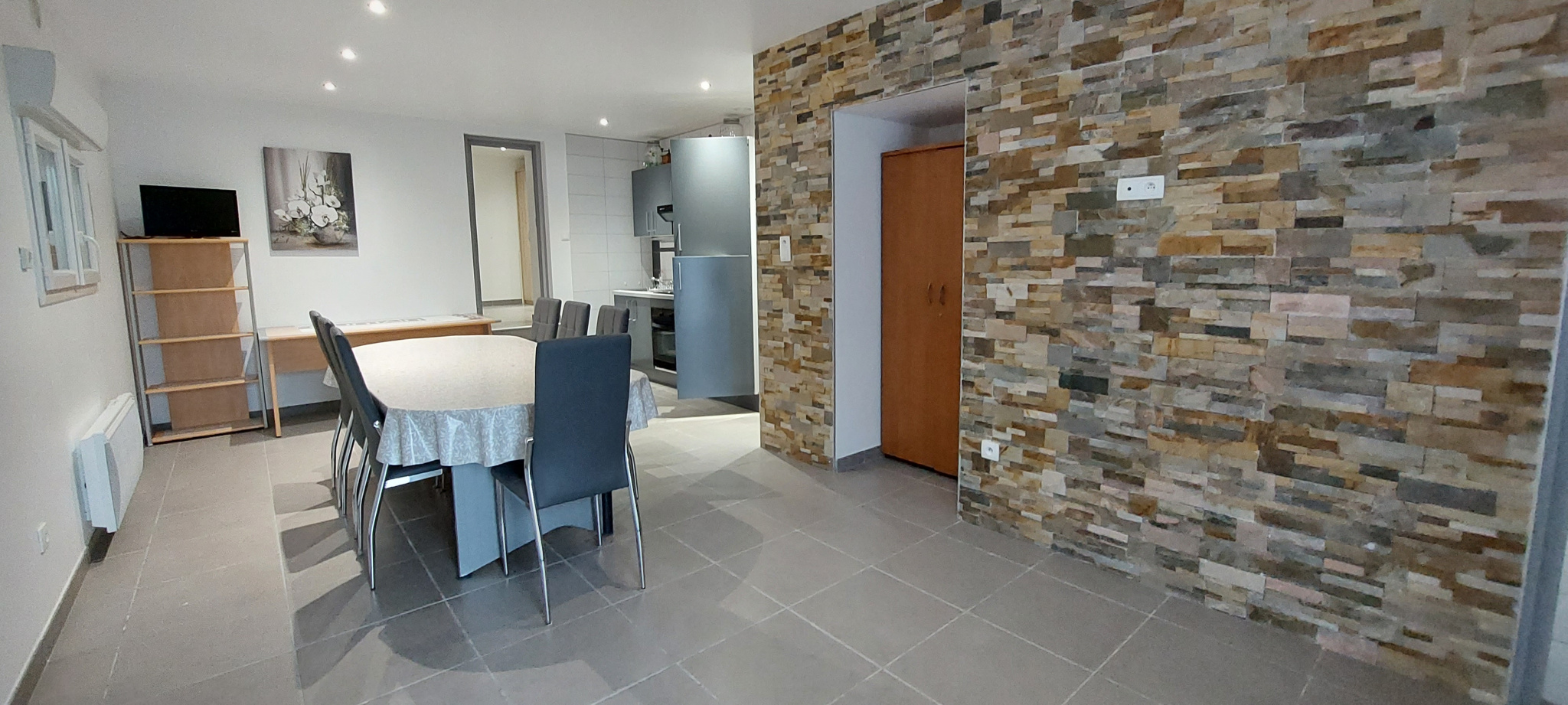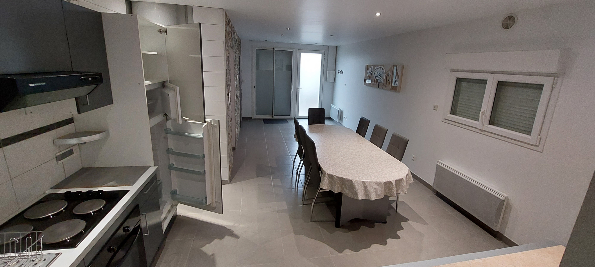 La maison s'articule sur une partie habitation type 5 en bon état avec séj/salon et cheminée, cuisine aménagée, sde, wc et 3 ch. ainsi qu'un vaste s/sol complet agrémenté d'un type 2 de 50 m2 entièrement rénové avec accès indpt.