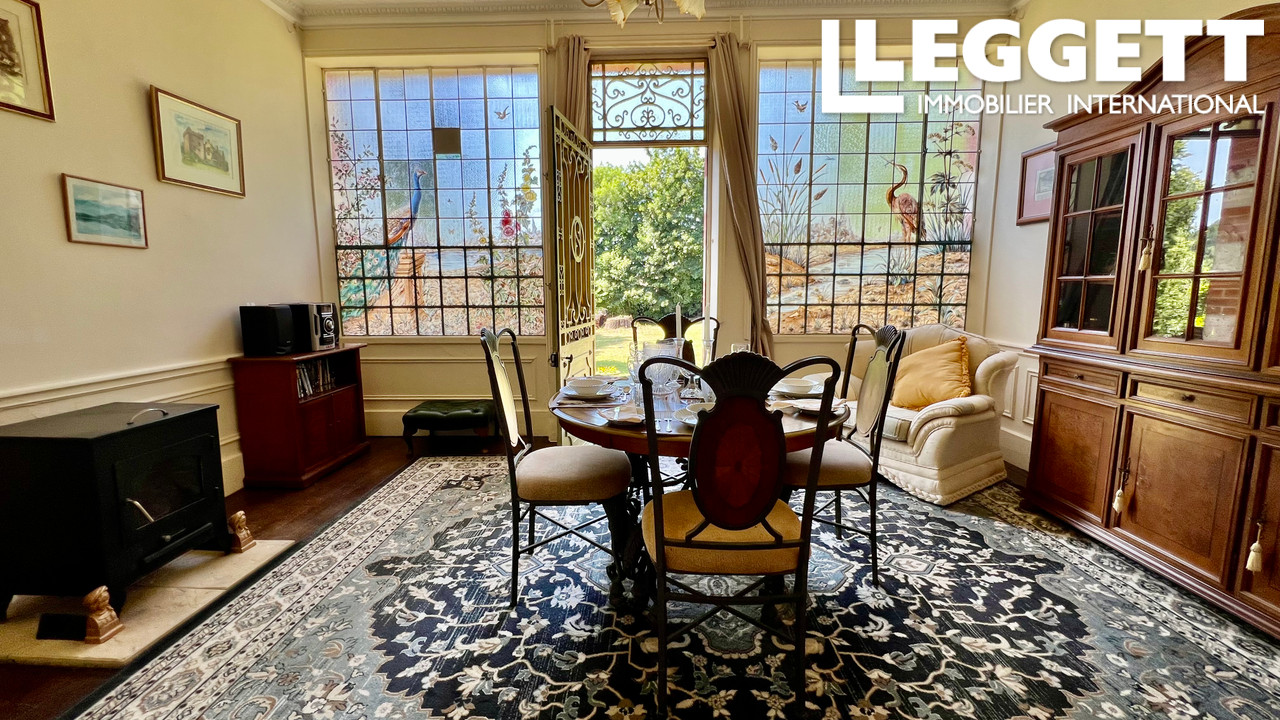 A20408CHT24 - Ce manoir datant de 1880 appartenait autrefois à une famille de Limoges qui installait des mosaïques de porcelaine et des vitraux. La maison est de taille importante et présente de nombreux éléments d'origine. Cinq chambres, deux salons, une salle à manger et trois salles de bains en font une très belle maison familiale. Comme elle se trouve juste à côté de l'école du village, c'est aussi un choix pratique pour les trajets scolaires qui peuvent se faire à pied.