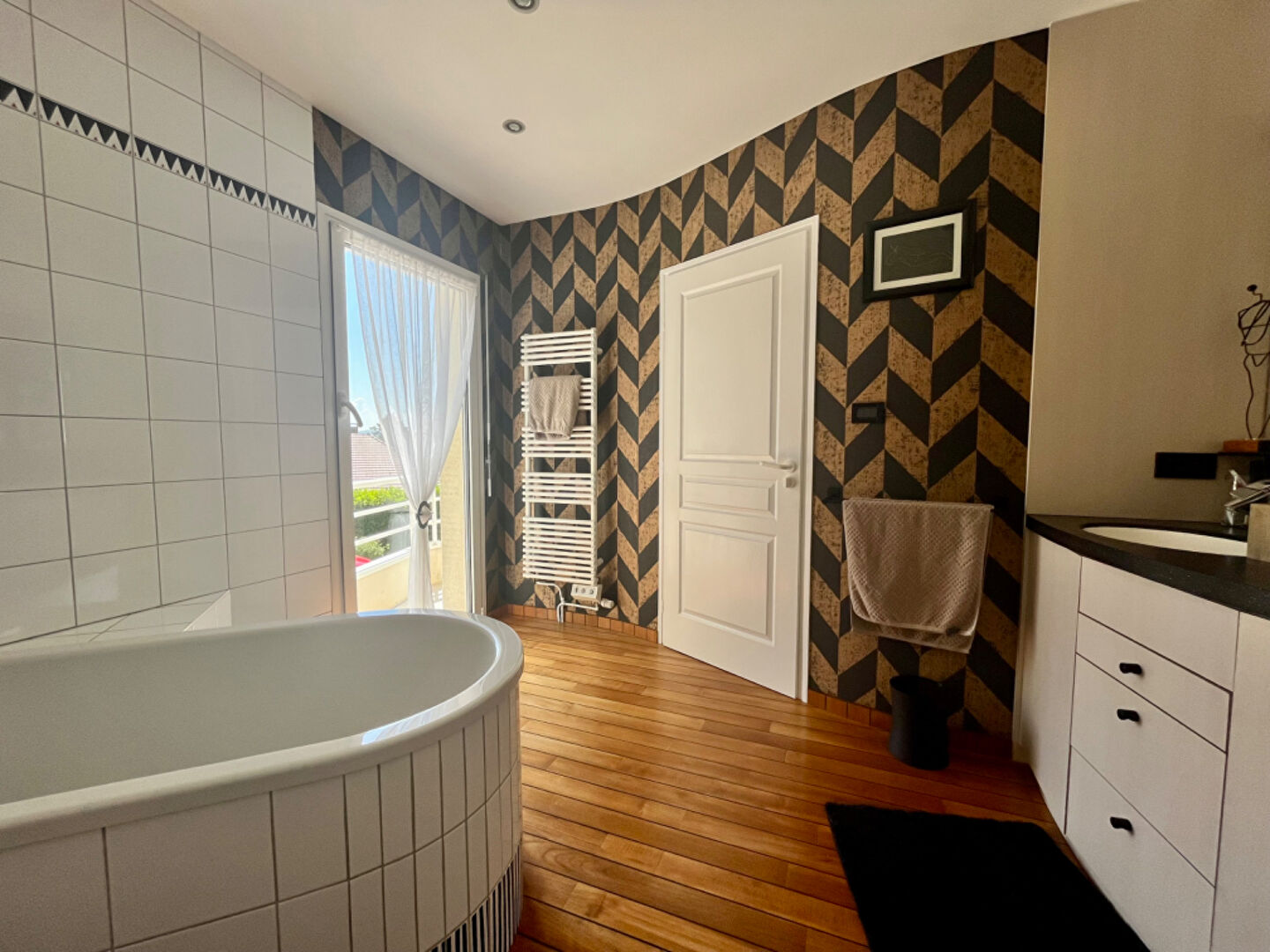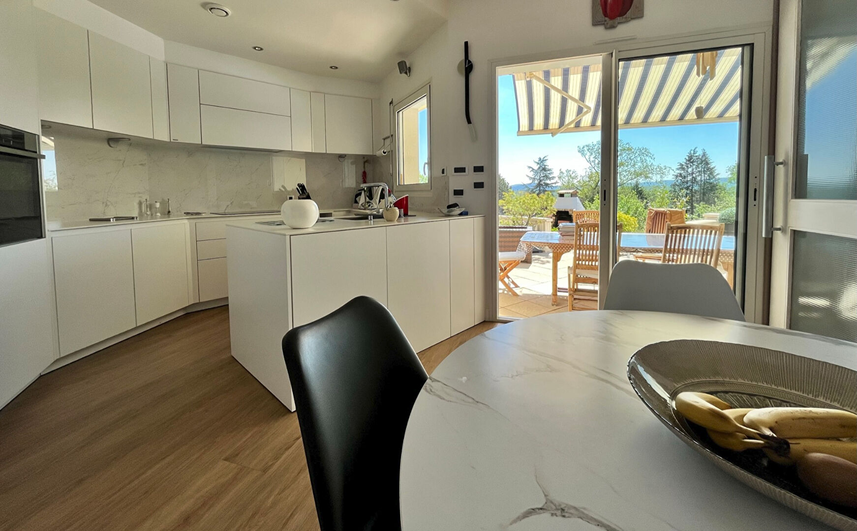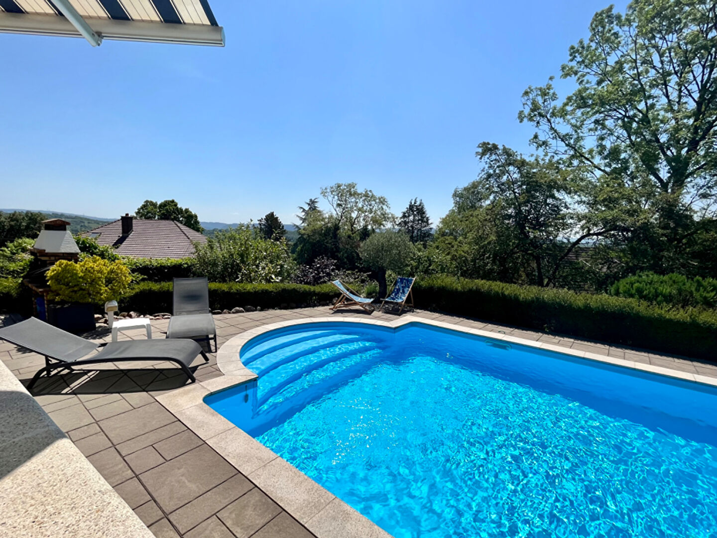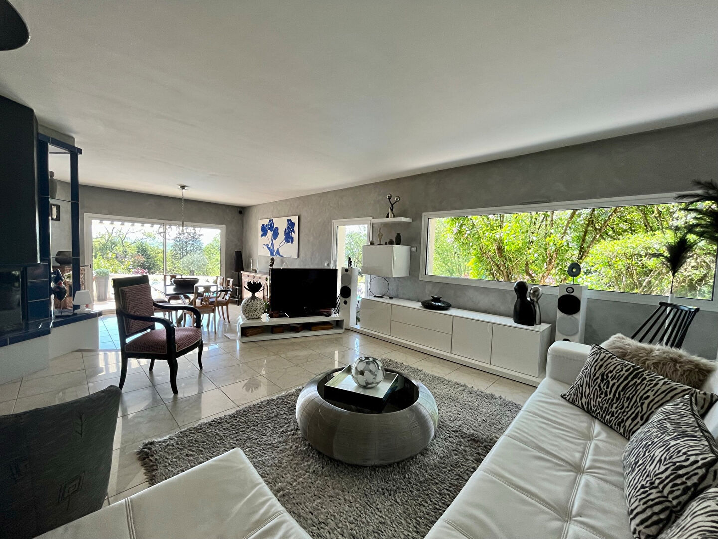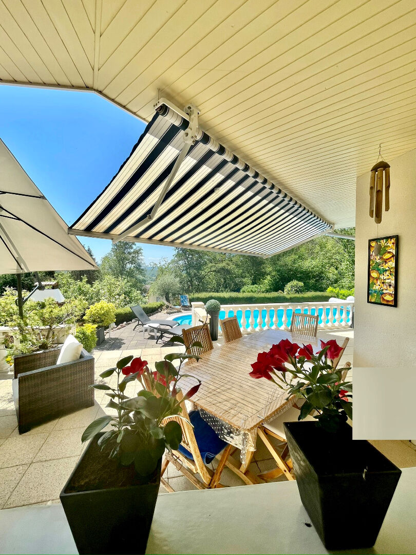 Belles prestations , décoration soignée ,quiétude sont les maîtres-mots de cette villa . Au rdc cuisine équipée avec accès direct sur terrasse surplombant la piscine avec son bleu turquoise , salon séjour donnant sur un cadre de verdure idyllique . Une suite parentale avec douche baignoire et accès terrasse . A l'étage 4 chambres dont deux avec salle d'eau communiquante ;bureau ; mezzanine ; salle de bain ....